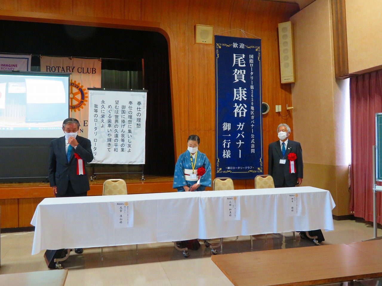 また例会では、ガバナーから、国際ロータリー会長のテーマと方針および2650地区の方針等についてお話いただき、会員一同、ロータリアンとしての学びを深めました。今後のクラブ運営、活動に生かしてまいります。