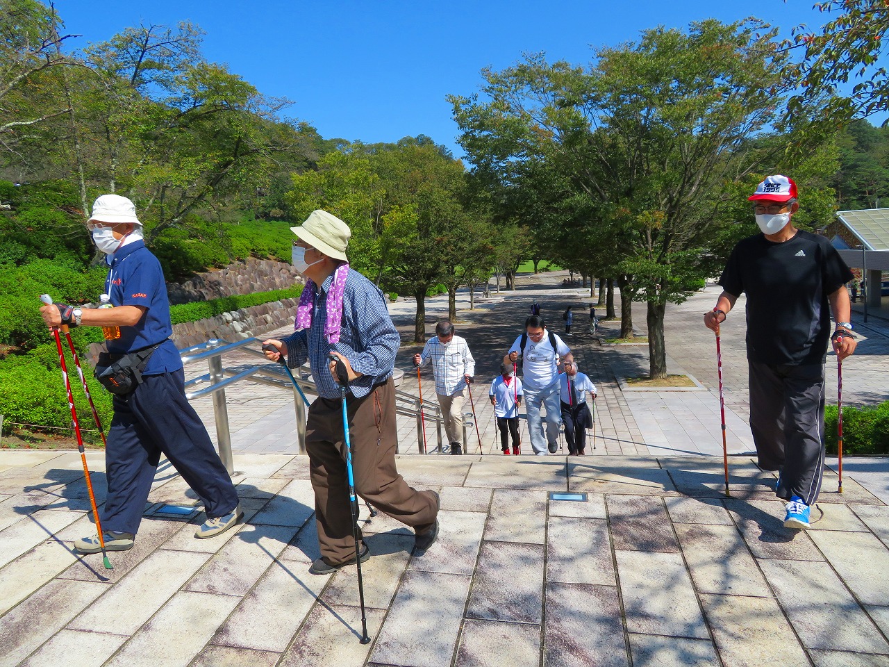 殆どの会員がノルディックウォーク初体験。トータル1時間半ほどでしたが各自が自分のペースで楽しみながらよい汗をかきました!夏から秋に移ろい始めた西山公園の魅力も満喫の充実の一日でした!