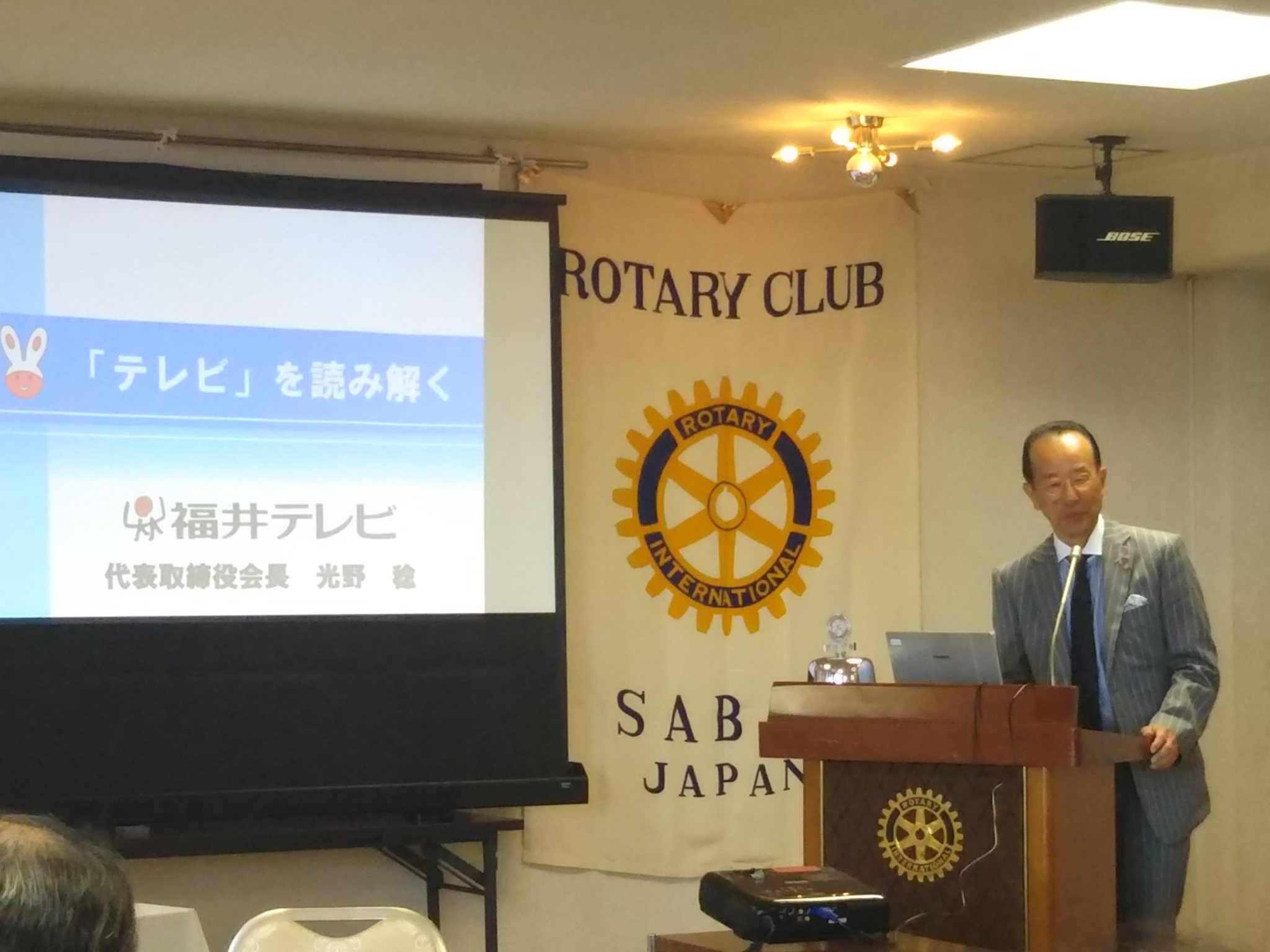鯖江ロータリークラブ例会卓話/福井テレビジョン放送㈱代表取締役会長 光野 稔 様「テレビを読み解く」