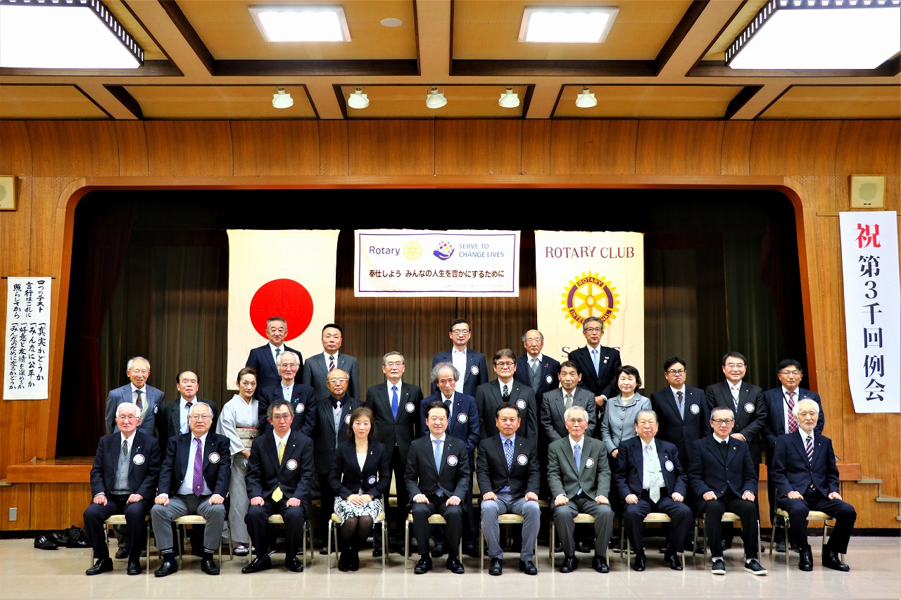 以来、ロータリーの奉仕と親睦の精神の実現のために、チャーターメンバーはじめ、先輩諸兄と会員の皆様の、たゆまぬ努力と情熱、そして、62年の歳月の流れに毎週の例会、それらを紡ぎ合わせて、めでたく3000回目の例会を開催することができました。