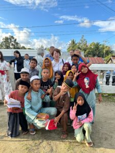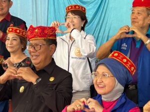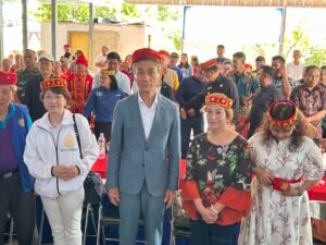 3枚目の写真の私の隣の女性がインドネシア3420地区のガバナー、反対隣の男性がPoso郡の副郡長で、盛大なセレモニーが行われました。私が頭にかぶっている赤いヘアバンドのようなもの、男性たちがかぶっている赤い帽子のような形状のものはPoso村に着いた時に村人たちから歓迎の印にいただきました。式典のような正式な場で使われるようです。両国の国歌が流れましたが、海外で歌う「君が代」は、何か胸に迫るものがありました。