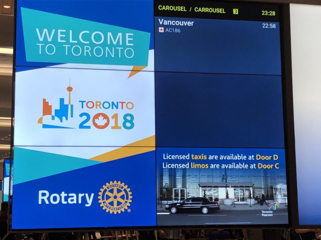 2018年6月23日~27日、カナダのトロントで「2018年ロータリー国際大会」が開催され、北口会長エレクト、植村幹事、中田SAA、内田次年度幹事予定者(役職は2017-18年度)が参加。昨年に続いて桜井ロータリークラブからの国際大会登録者数は4名でした。会員数の多いクラブでも参加者ゼロというところがある中、桜井ロータリークラブのメンバーの意識の高さを内外に知っていただけたと思います。