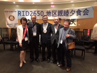 夜は、国際ロータリー第2650地区主催の夕食会。姉妹地区である第5000地区のハワイからのお客様2名を含む112名で市内のホテルの中華レストランで地区内の参加者と共に親睦の楽しい時間を過ごしました。