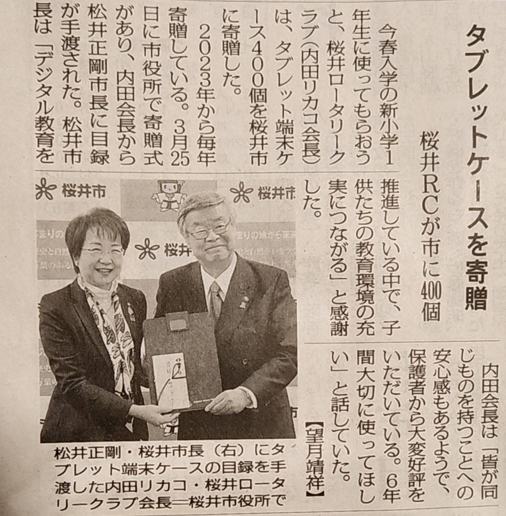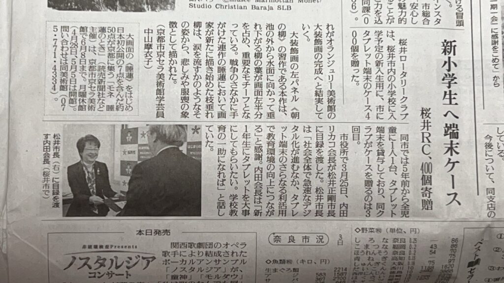 タブレットケース贈呈式がメディアで紹介されました! – 桜井ロータリークラブ