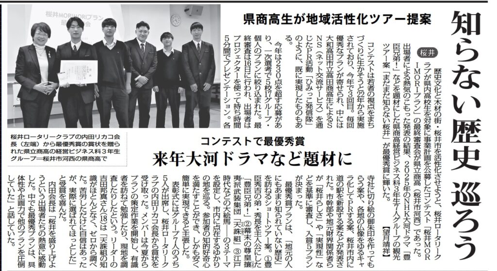 最優秀賞:「まだまだ知らない桜井市」奈良県立商業高等学校