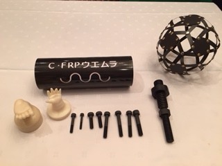 約2年のトライを経てC-FRP加工と複雑形状の加工が出来る様になり、技術のアビールと新たな出会いを求めて各種の展示会に出展しています。