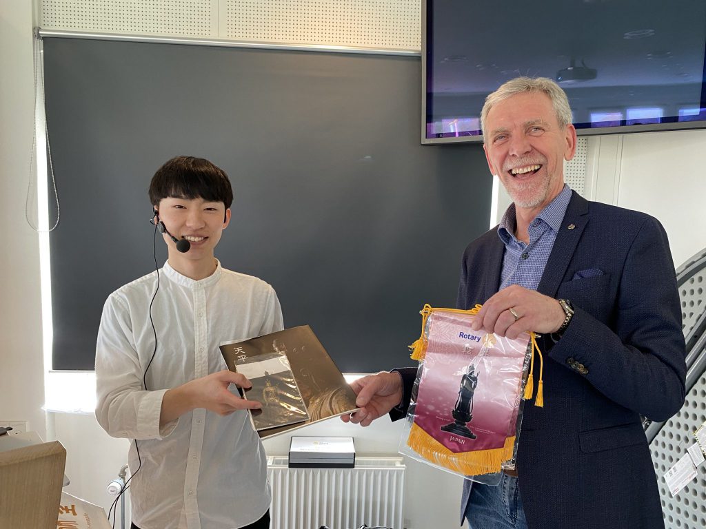 会場まで車で送っていただき、まずランチを会員の方といただいただきました。皆さん平日の昼間からお酒を飲まれていてデンマークらしいなと感じました。ランチの後、デンマークに来た経緯、ロータリーの奨学金を受けた経緯、デンマークでの生活などを皆さんに向けてお話しました。最後に皆さんから預かっていた旗などの贈り物もようやく渡すことが出来ました。