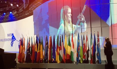 ジョン・ジャーム会長の挨拶につづいての各国国旗の入場は壮観でした。国旗が入場したときにはその国から来たロータリアンたちが立ち上がって手を振ります。日の丸が入場したときにはこんなにもたくさんのロータリアンが日本から来ているのだと本当に驚きました。