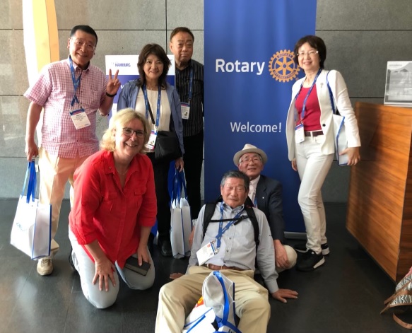 今までに国際ロータリーの会長になった日本人は、東ケ崎 潔(1968-69年度)(とうがさき きよし)、向笠 廣次(1982-83年度)(むかさ ひろじ)、田中 作次(2012-13年度)(たなか さくじ)の三人で、国際大会も3度日本で開催されております。田中作次さんはご存命で、幼いころは貧しいご家庭で育ち、家計を助けるために上京して夜間高校に通いながら働き、大会社の社長になられるまで大変ご苦労をされた方だとお聞きしております。