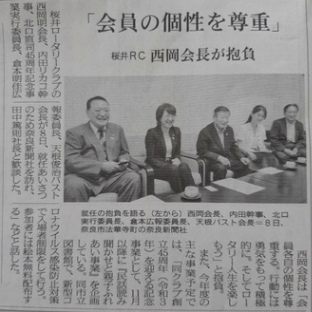 7月8日(水)、奈良新聞社と奈良テレビ放送へ表敬訪問に行ってきました。奈良新聞社には天根パスト会長のご紹介で田中社長と面談が叶いました。西岡会長、内田幹事、北口45周年記念事業実行委員長、倉本クラブ広報委員長で今年度の事業計画や会長の方針についてお話してきました。新型コロナウィルスの影響で昨年度実施のはずの桜井ロータリークラブ杯学童軟式野球大会が8月2日、9日で実施されることや45周年記念事業として「民話の読み聞かせと親子ふれあい事業」を桜井市立図書館で感染対策をしながら実施予定であることなどをお伝えしました。各事業においては取材に来ていただくようお願いしました。