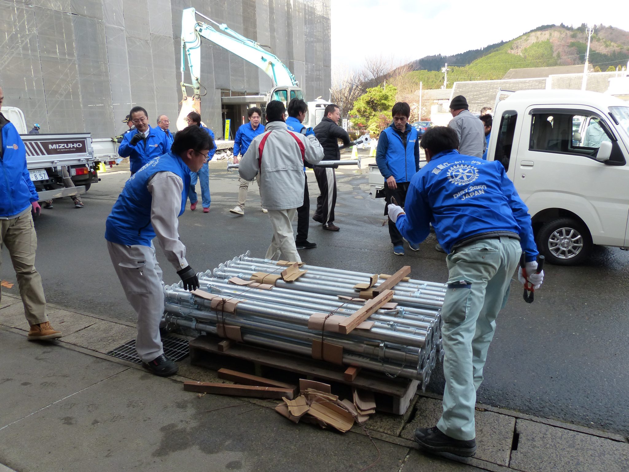 高島ロータリーではパイプサポートを120本用意し、昨年末に市内二カ所で設置および使用方法の説明会を開催し、その場にてパイプサポートを関係各所へ提供させて頂きました。
