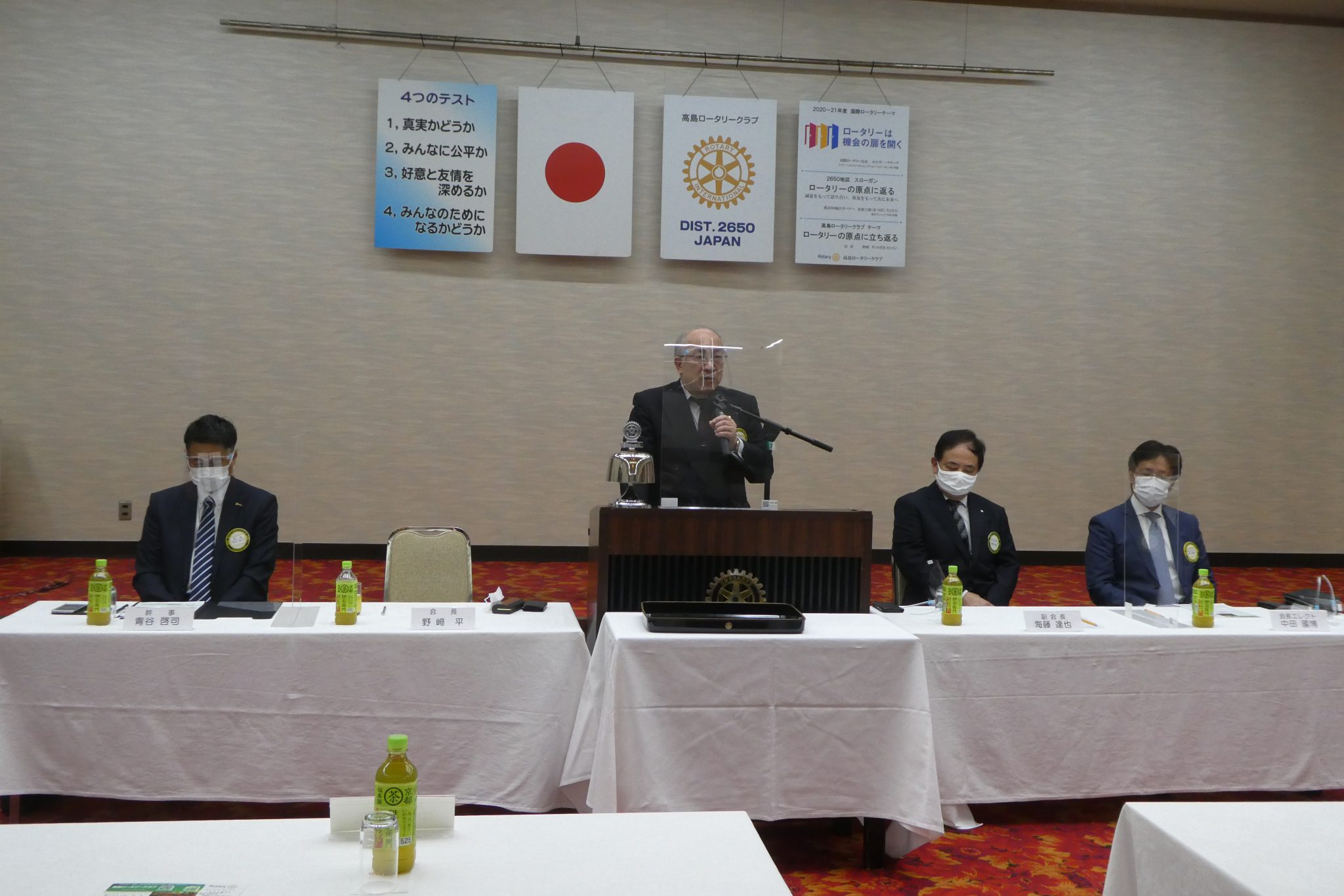 昨今のコロナ禍の中、休会していました例会を9月5日(水)に可以楼別館にて開催するにいたりました。感染予防のためソーシャルディスタンスを徹底した設営を行い、時間を短縮しての開催となりましたが、会長の挨拶をはじめ例会プログラムを執り行うことができました。例会内では2名の新入会員の入会式も行い、メンバーも増えた門出となりました。
