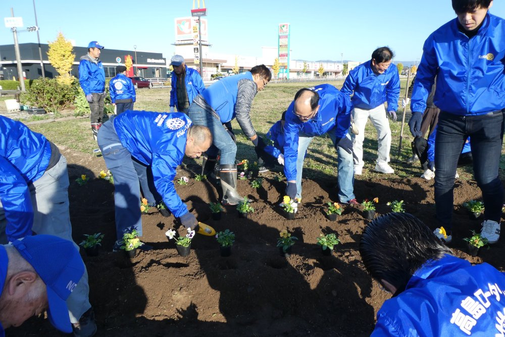 高島の交通の要所である国道161号線の安曇川道の駅街道に、安全運転を祈願しパンジー等の花を植えさせていただきました。道行く方々の心を和ませるとともに、色鮮やかな植物で付近のにぎわいに花を添えることが出来ました。