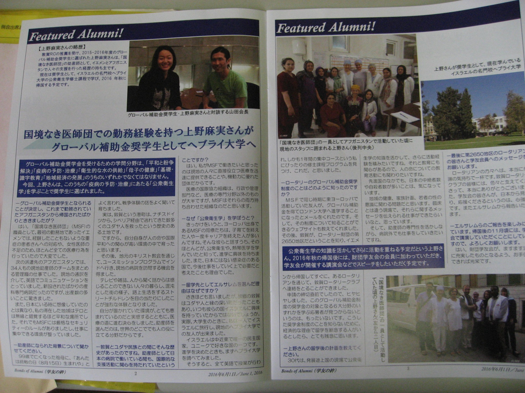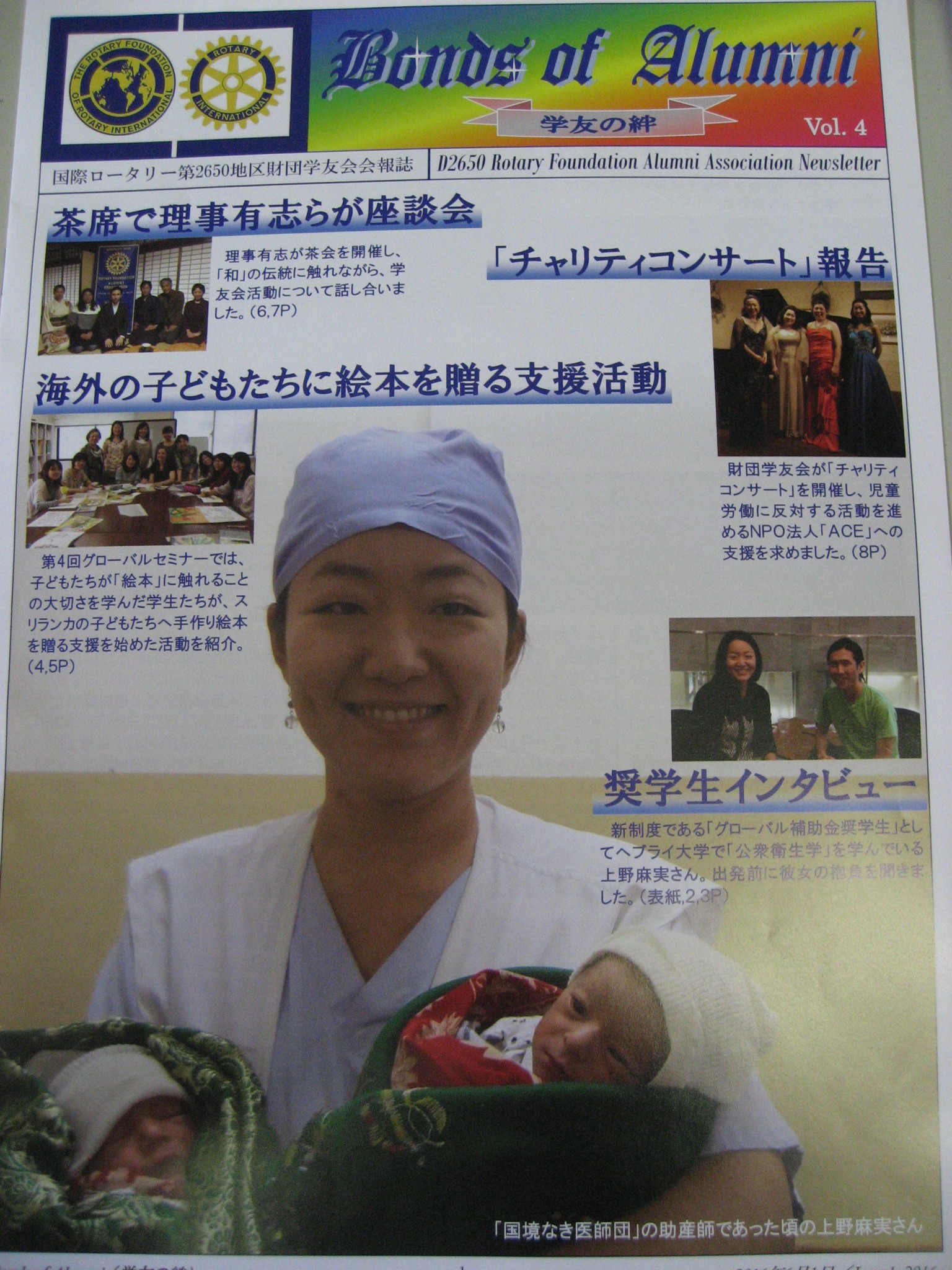 出発前のインタビューが国際ロータリー第2650地区財団学友会会報誌Vol.4に掲載されております。