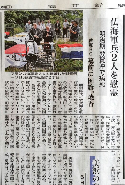 昨日開催されました「仏兵墓地慰霊祭」の様子が本日8/4の福井新聞29面に掲載されました。