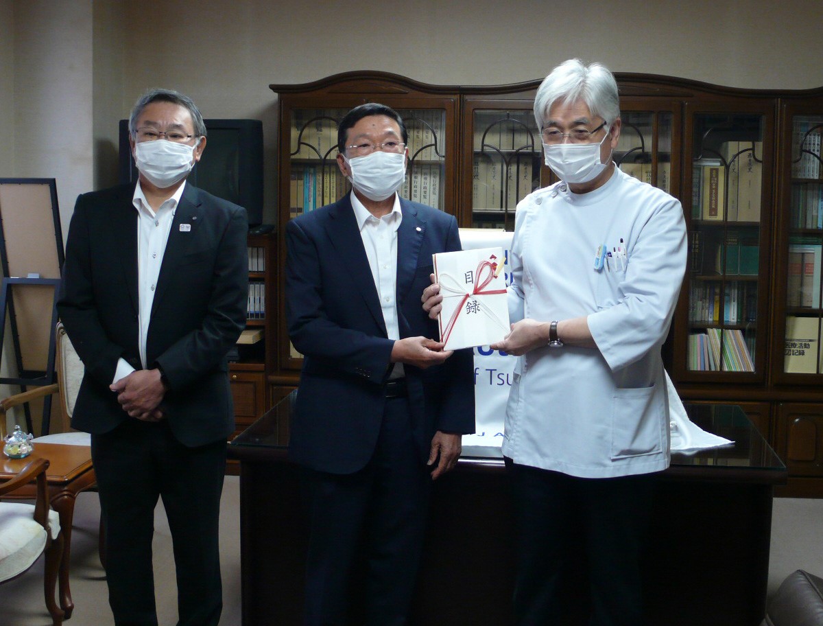 2020/5/21、新型コロナウイルス感染拡大防止のため、敦賀市医師会へフェイスシールドを贈呈しました。敦賀市医師会を通じて、市立敦賀病院、敦賀医療センター、レイクヒルズ美方病院、敦賀地区歯科医師会、小浜医師会、三方郡医師会へ配布頂きました。