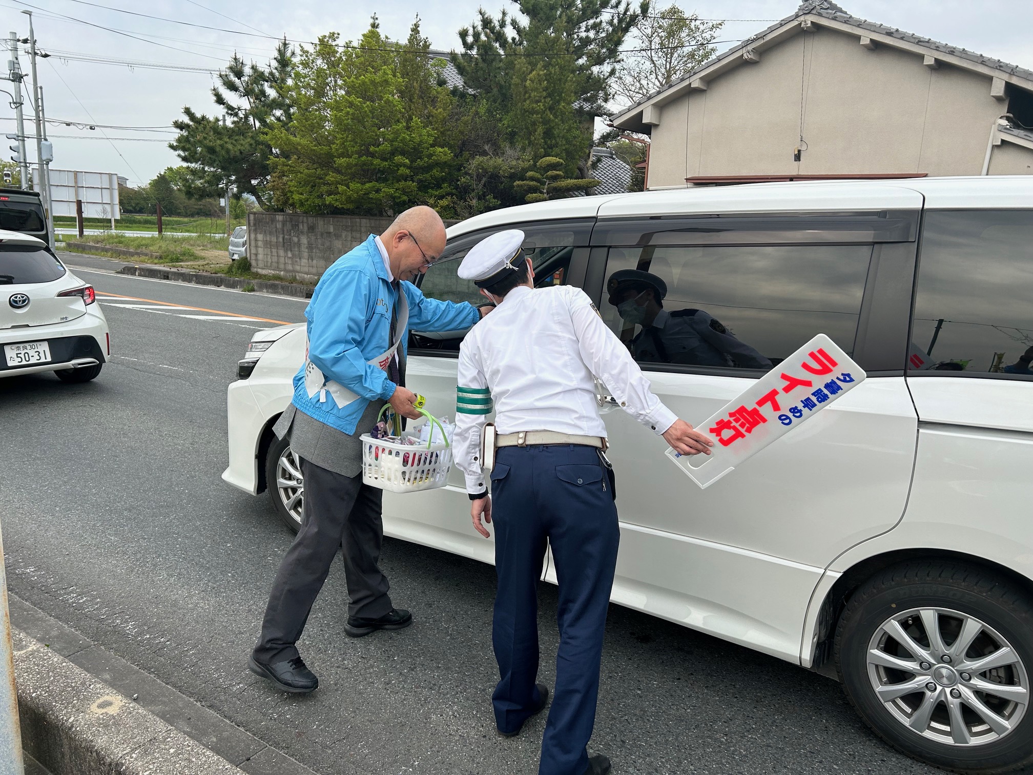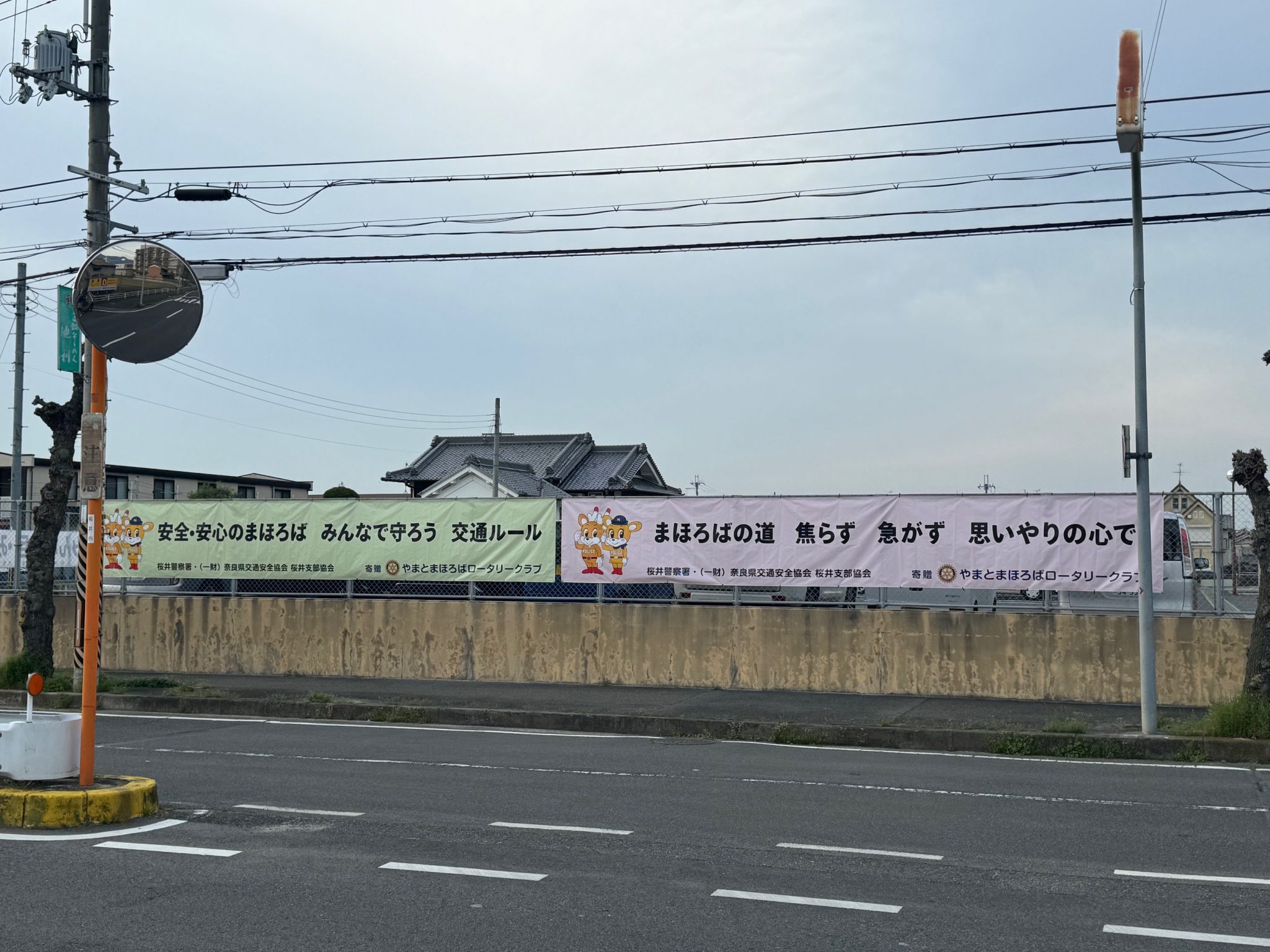 活動報告ACTIVITES REPORTS 春の交通安全運動および啓発活動 2024.06.17 交通事故のない、住みやすい安全な町づくりの一助になるように、交通安全週間に幹線道路の交差点で交通事故防止の啓発運動および、桜井警察署に長さ8mの横断幕を寄贈した。