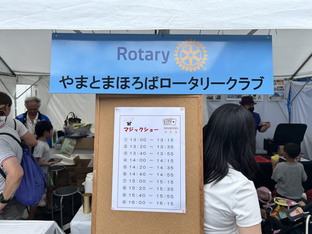 マジシャンさんには、休む間もなく、マジックショーをしていただき、ブースの前を通る人々が関心をもち見学されてました。