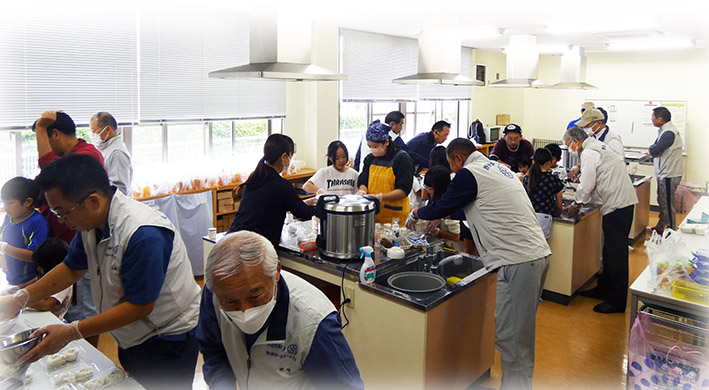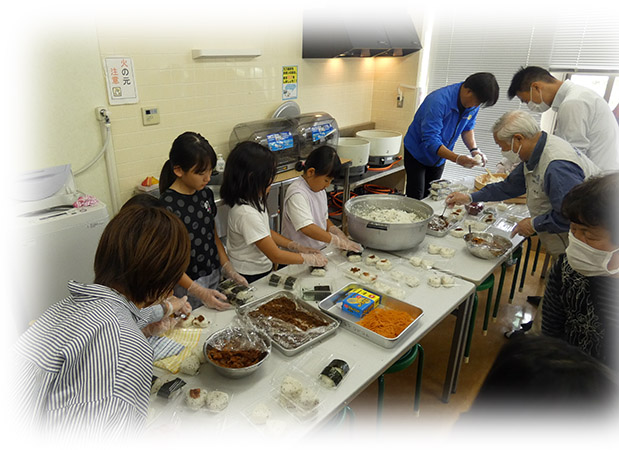 10月7日の土曜日、朝9時よりコミュニティセンターなかさとで、社会奉仕員会を中心に、「子ども食堂さんとのおにぎり作り体験学習会」を開催しました。おにぎりのたねには梅干しやごま塩の他に地元の食材のびわ湖のうろり(ごり)の佃煮を使い、楽しいおにぎり作りを体験しました。大きなお釜で沢山のご飯を炊くのはみんな初めてで、子どもたちは大人と一緒に一生懸命取り組んでくれました。