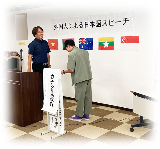 9月10日、日本語スピーチ大会に初協賛、財間会長がエール!