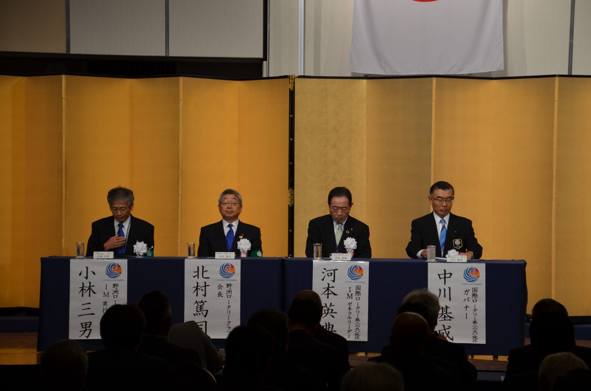 開会式典は、続いて野洲クラブ北村篤司会長の歓迎の言葉、地区役員、来賓紹介、クラブ紹介、そして地区役員、来賓のご挨拶をいただきました。