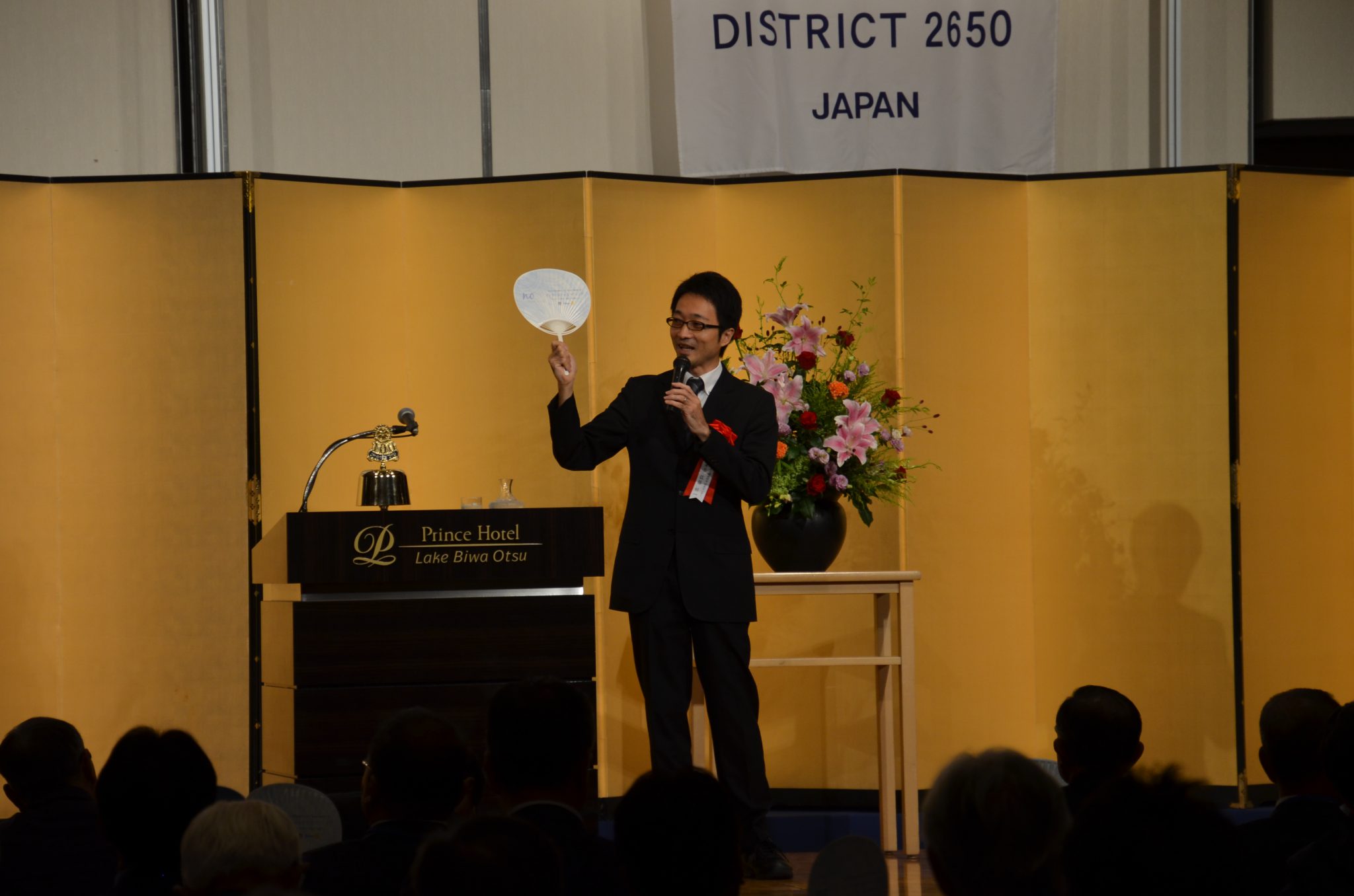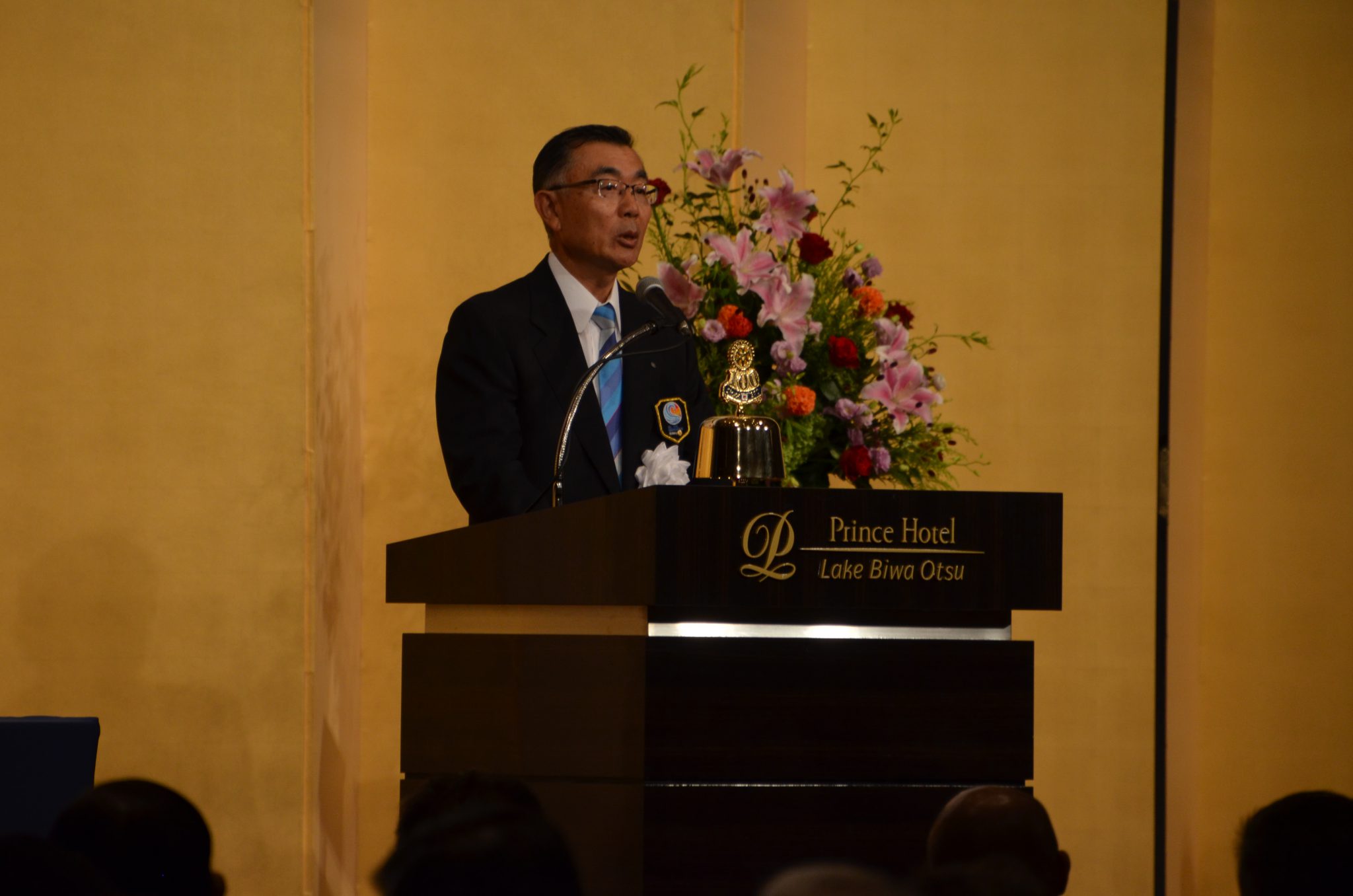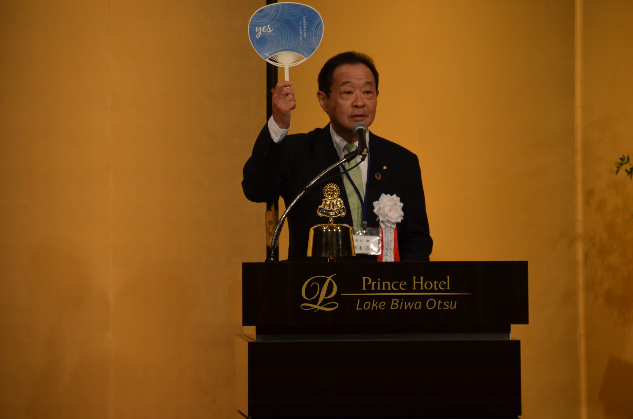 閉会式典では次年度の第1組インターシティミーティングのホストクラブが中川基成ガバナーより発表されました。次年度は栗東クラブさんです。竹脇会長が抱負をお話しされました。来年に向けて、一年間がんばってください。