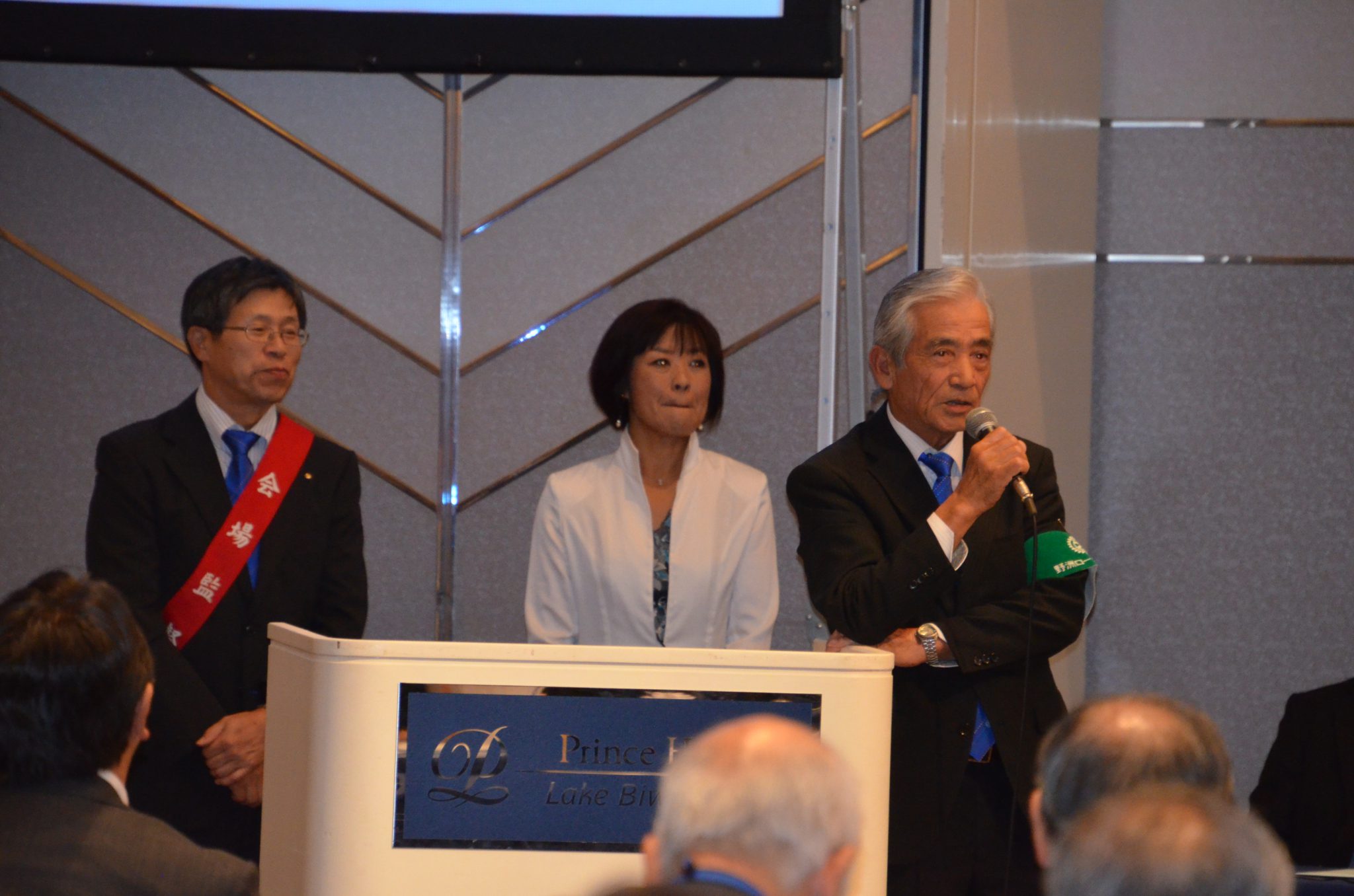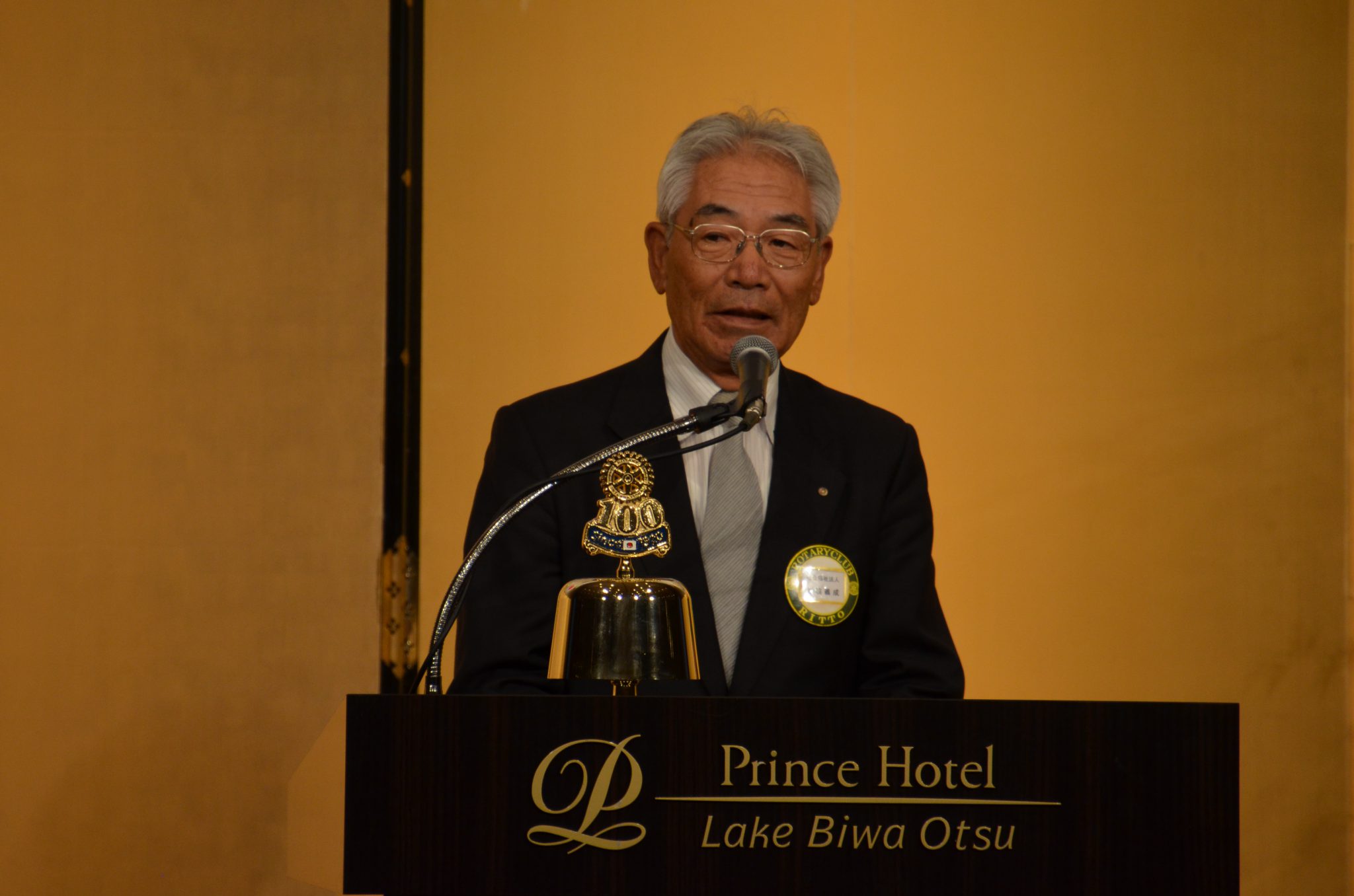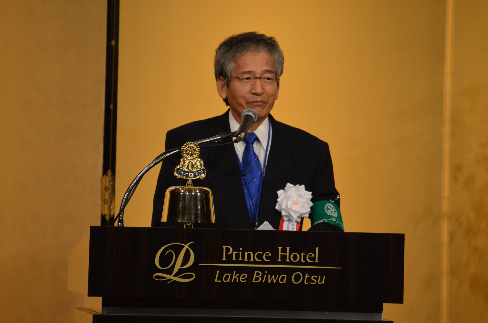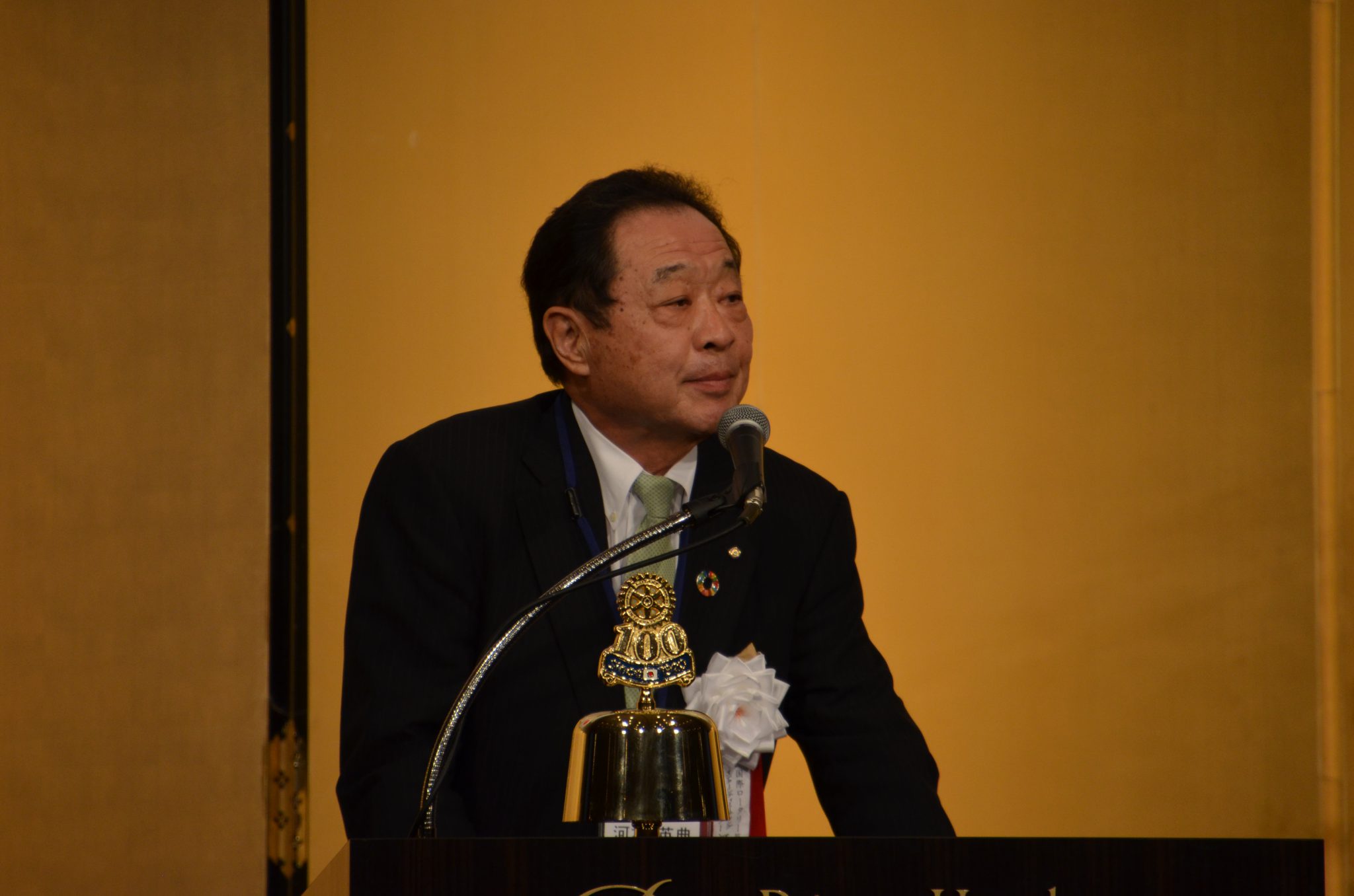 閉会式典では次年度の第1組インターシティミーティングのホストクラブが中川基成ガバナーより発表されました。次年度は栗東クラブさんです。竹脇会長が抱負をお話しされました。来年に向けて、一年間がんばってください。