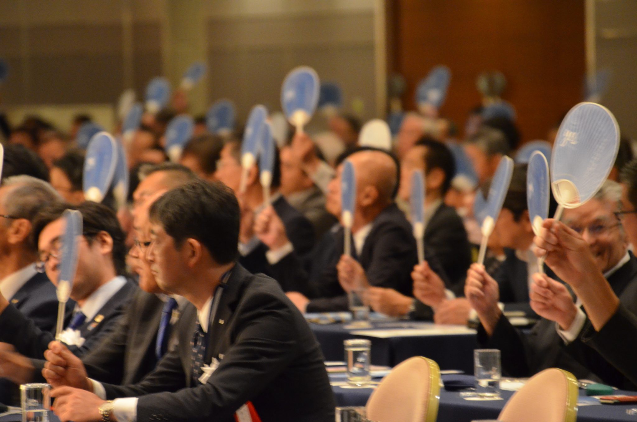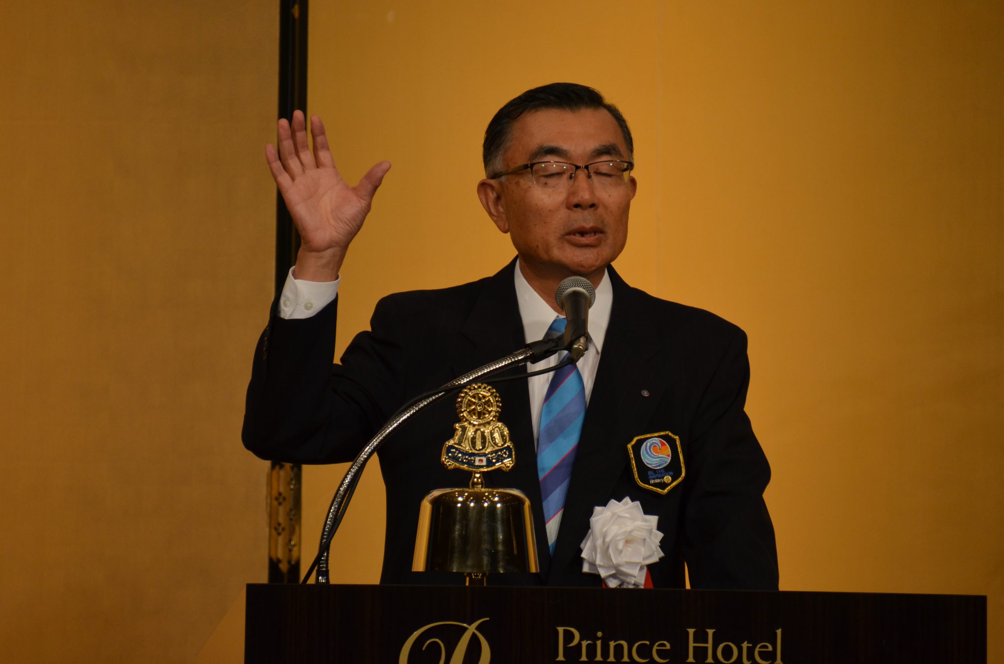 事業報告を終え、いつも辛口の厳しくも頼もしいゼネラルリーダー、河本英典パストガバナーの講評をいただき、第3部の閉会式典へと続きました。