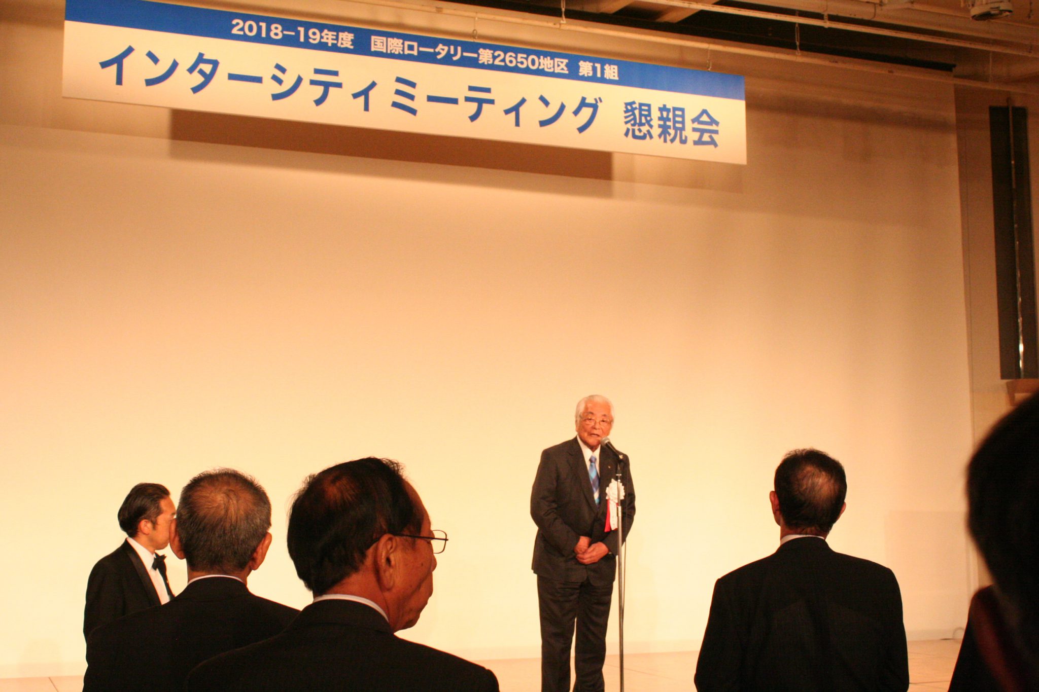 そしてインターシティミーティングの後はお楽しみの懇親会。富田謙三パストガバナーの乾杯発声でスタート!