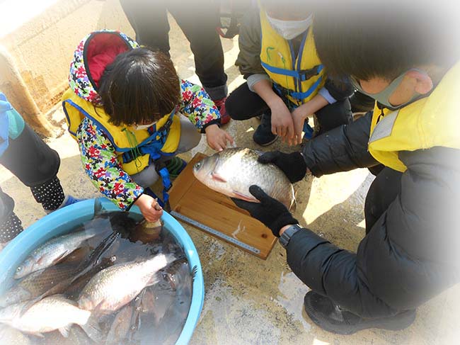 琵琶湖の漁獲量が減っている中、魚が網にかかるのかと心配しましたが、無事子どもたちに、琵琶湖の固有種の魚について、実際に見ながら学んでもらうことができました。