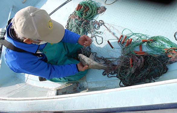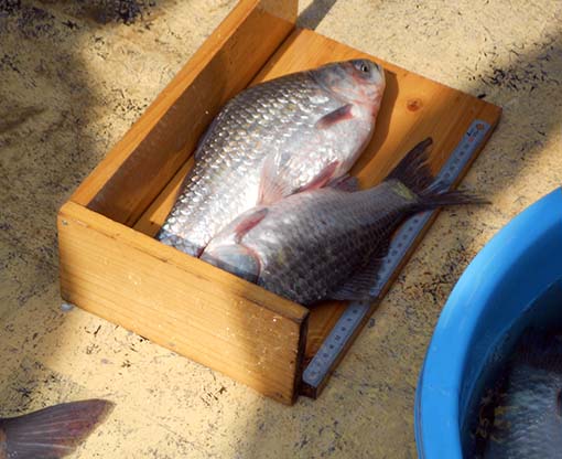 魚を網で獲る所を観察。