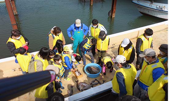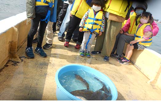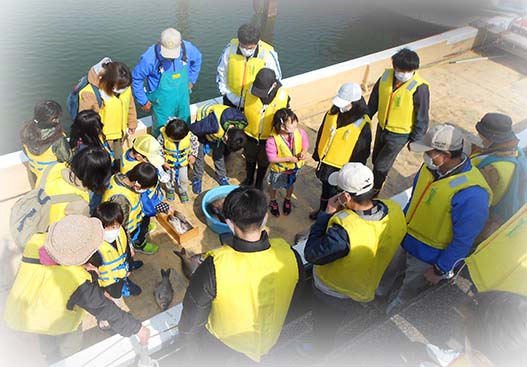 実際に獲れた魚をじっくり観察。魚の種類や特徴などについて学び、漁師さんに質問するなど、子どもたちは興味を持って学んでいました。
