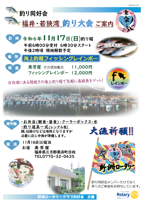 釣り同好会では11月に若狭湾での釣り大会を企画しています。