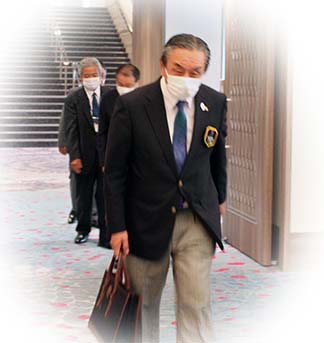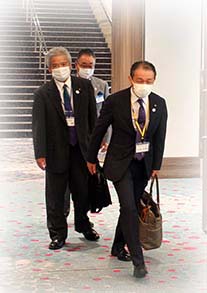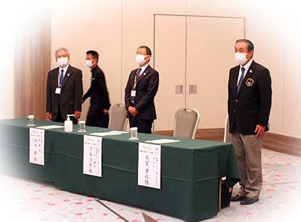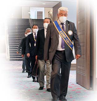 来賓席までのエスコート役は、野洲RC津田宗昭会長と守山RC北村和成会長。