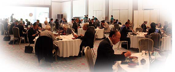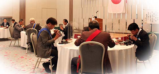 ↓ホストの野洲RC津田会長による開会点鐘、国歌斉唱、ロータリーソング「奉仕の理想」。そしてお客様紹介、食事歓談と続きます。