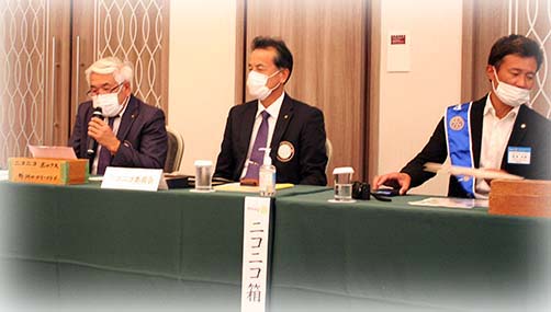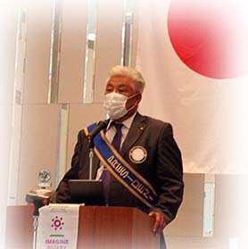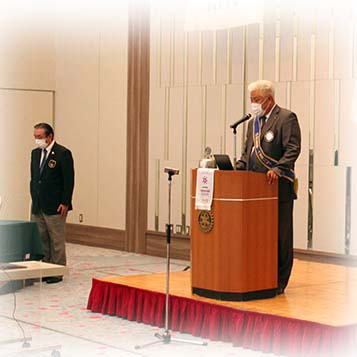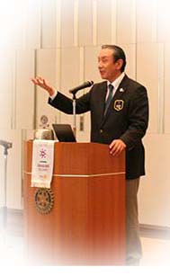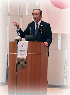 メインプログラムは尾賀康裕ガバナーのアドレス。「感動、感激、そして感謝」をスローガンに展開されています。