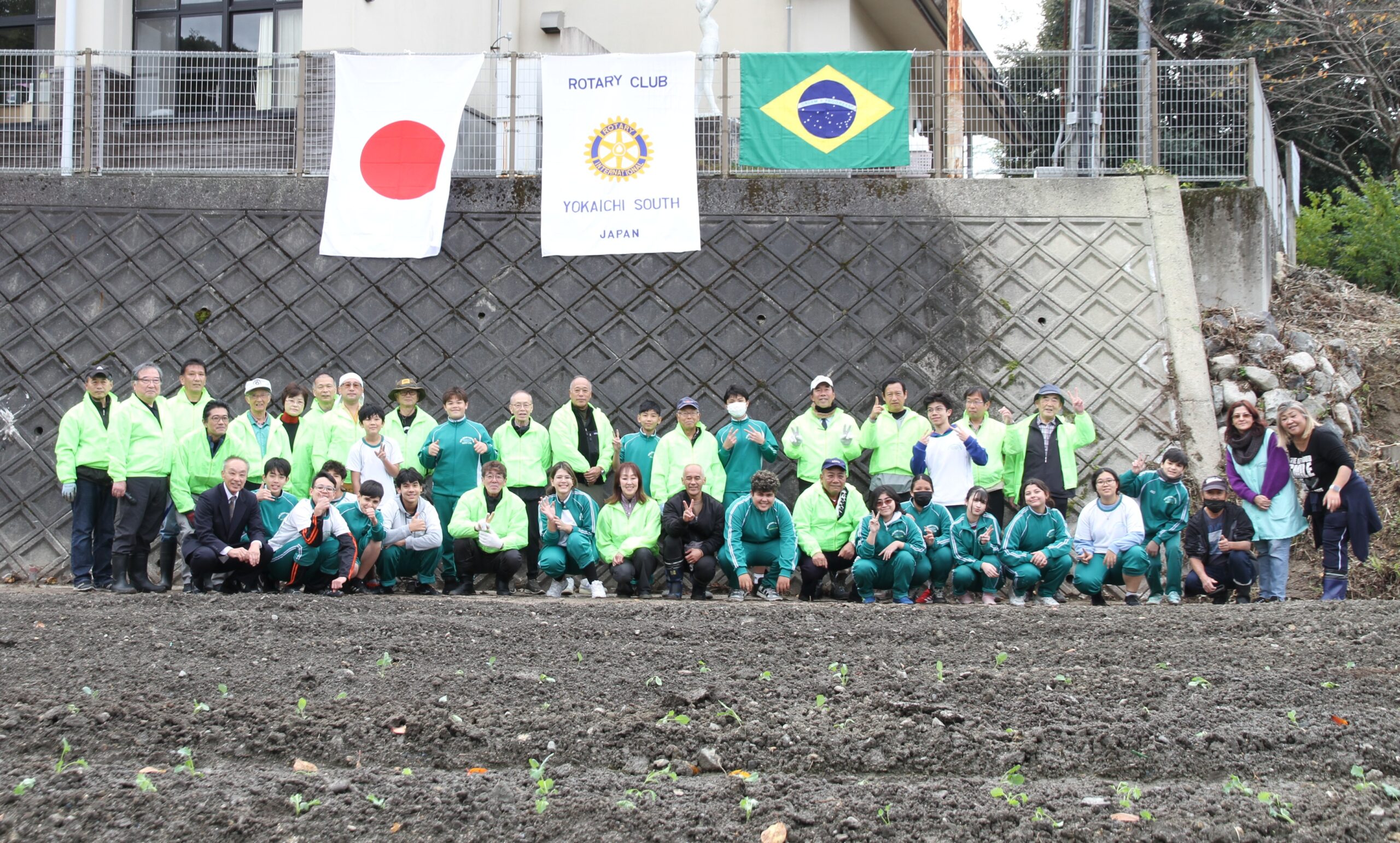 ラチーノ学院には、3歳から18歳のブラジル人の子供たち約180人ブラジルの教育を受けている準学校法人です。ラチーノ学院は準学校法人であるため、学校給食に該当するものをみずから用意していく必要があり、そのため、すこしでも食料調達の支援を行いたいと思いで、今回実行させていただきました。この畑地の整備については、継続的、有効に、子供たちへの自立的な教育効果があると考えられます。ラチーノ学院の皆様をはじめ、甲津畑自治会の皆様、関係者様に多大なご協力をいただきクラブメンバー一同感謝申し上げます。