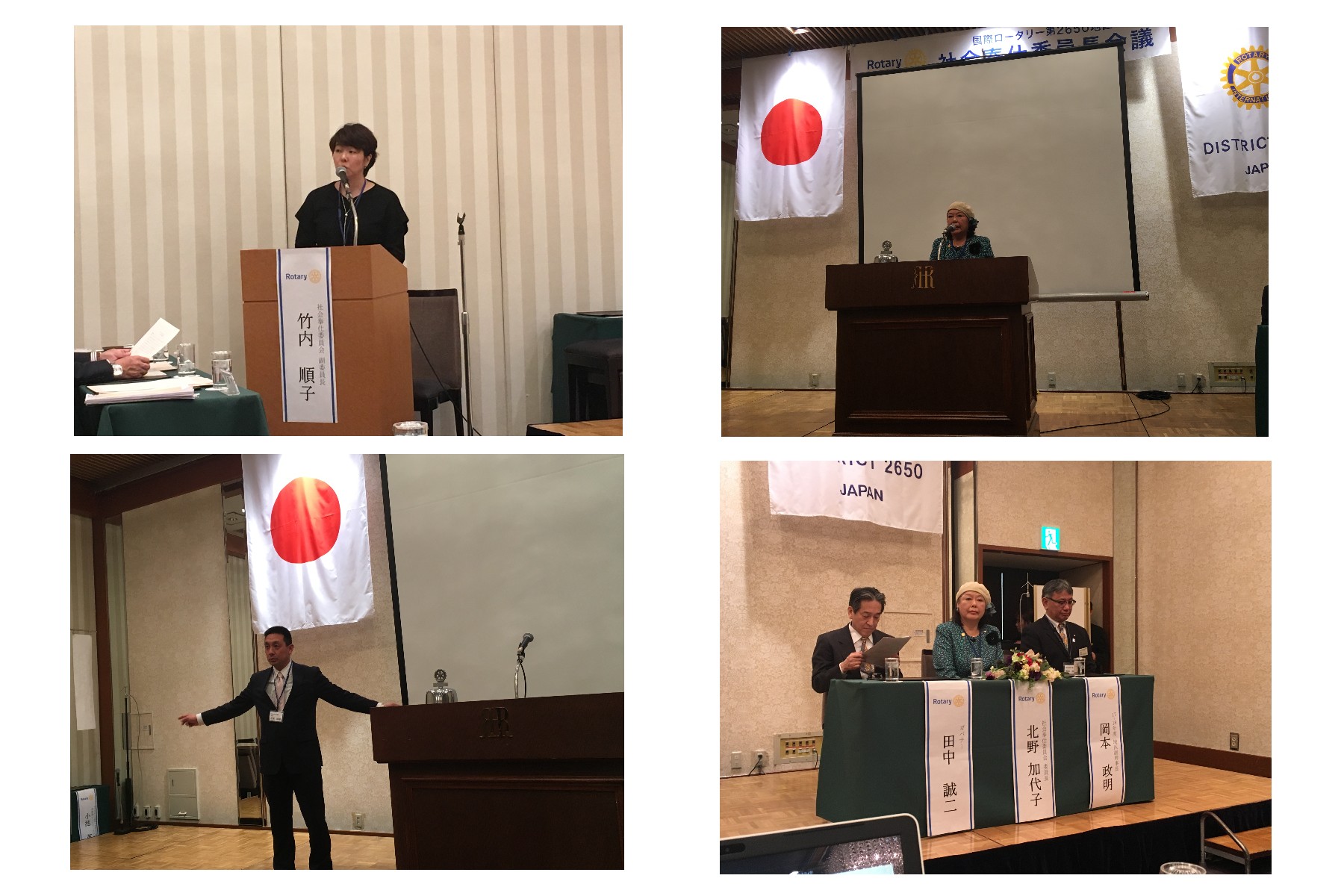 左下 ソングリーダーの柿木委員 右下 ご来賓(田中ガバナー 岡本幹事長)