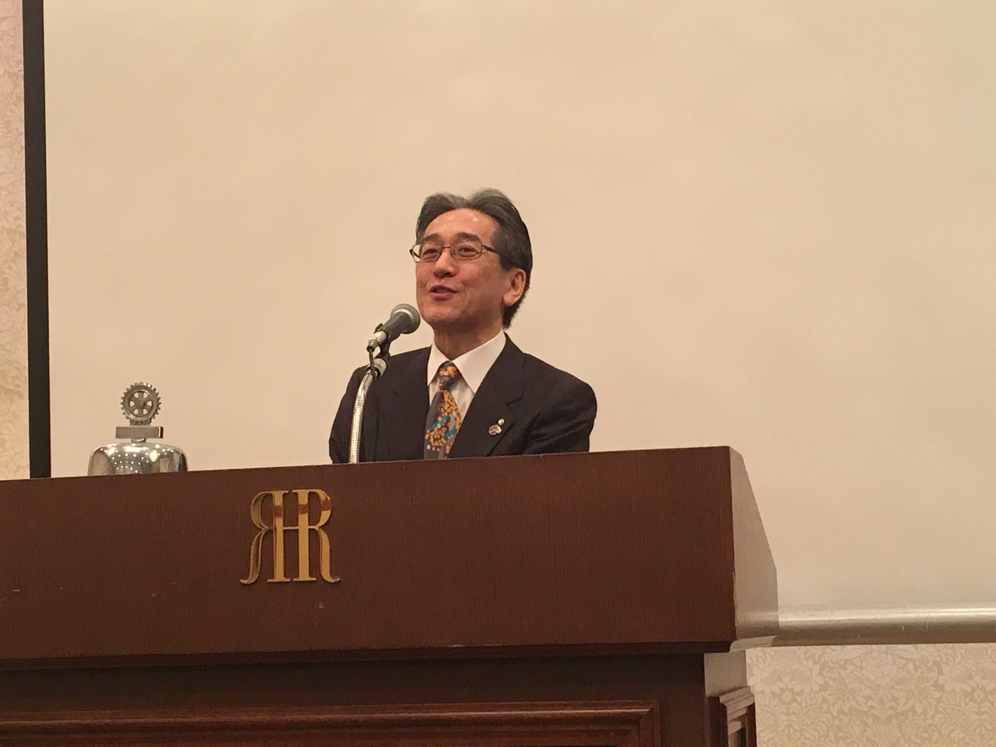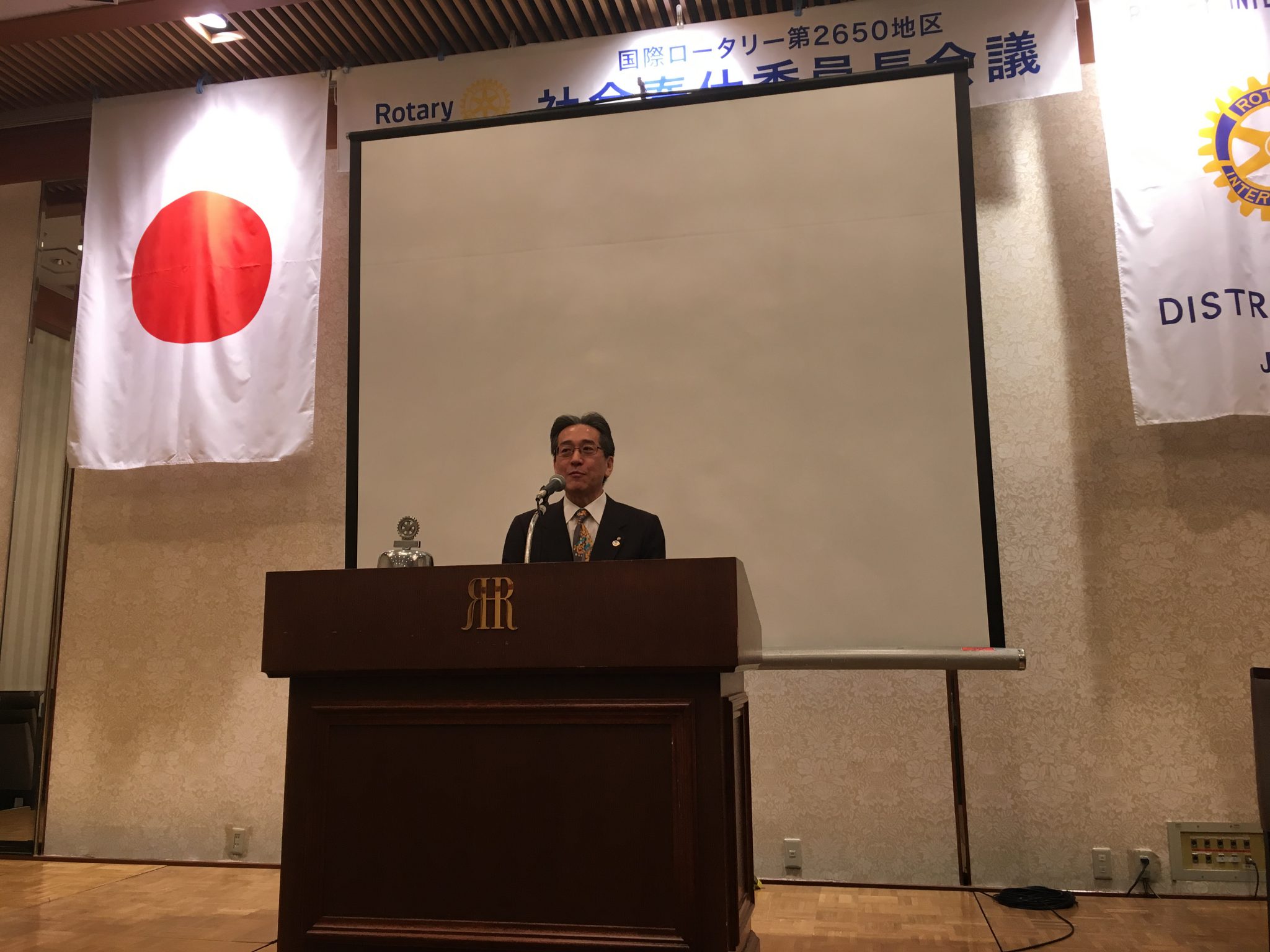最後に田中ガバナーより講評として下記のお言葉を頂戴しました。国際ロータリー会長のイアン H.S. ライズリー氏の言葉を借りて一言申すとするならば、奉仕活動を通じて地域に国に世界に、やがては私たちにプラスの変化をもたらす事が重要であります。ロータリーが行う奉仕事業はすべからく地域あるいは世界に対してプラスをもたらす事業になっているかを考えることが大事です。いろんな事業を行う際や悩んだときはこの事を一度たち止まって考えて見て下さい。きっとプラスのいい判断ができるのではないかと考えます。