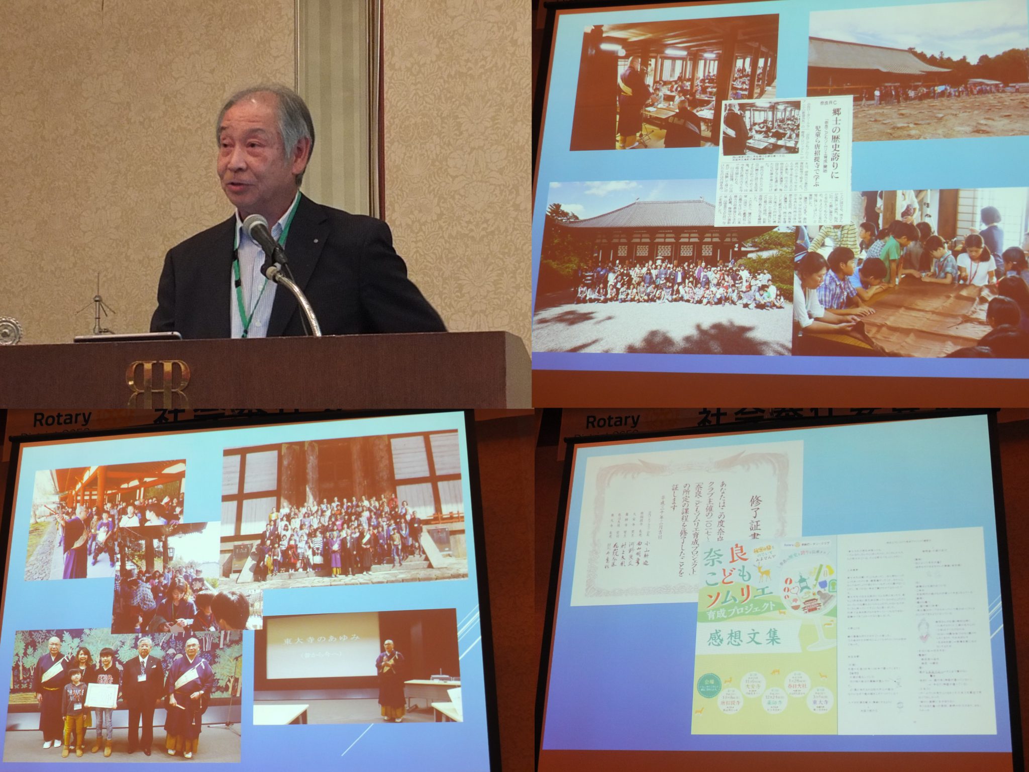 左上・・・本会議の開催に伴う御礼と趣旨説明を行う影近社会奉仕委員長(京都東RC)