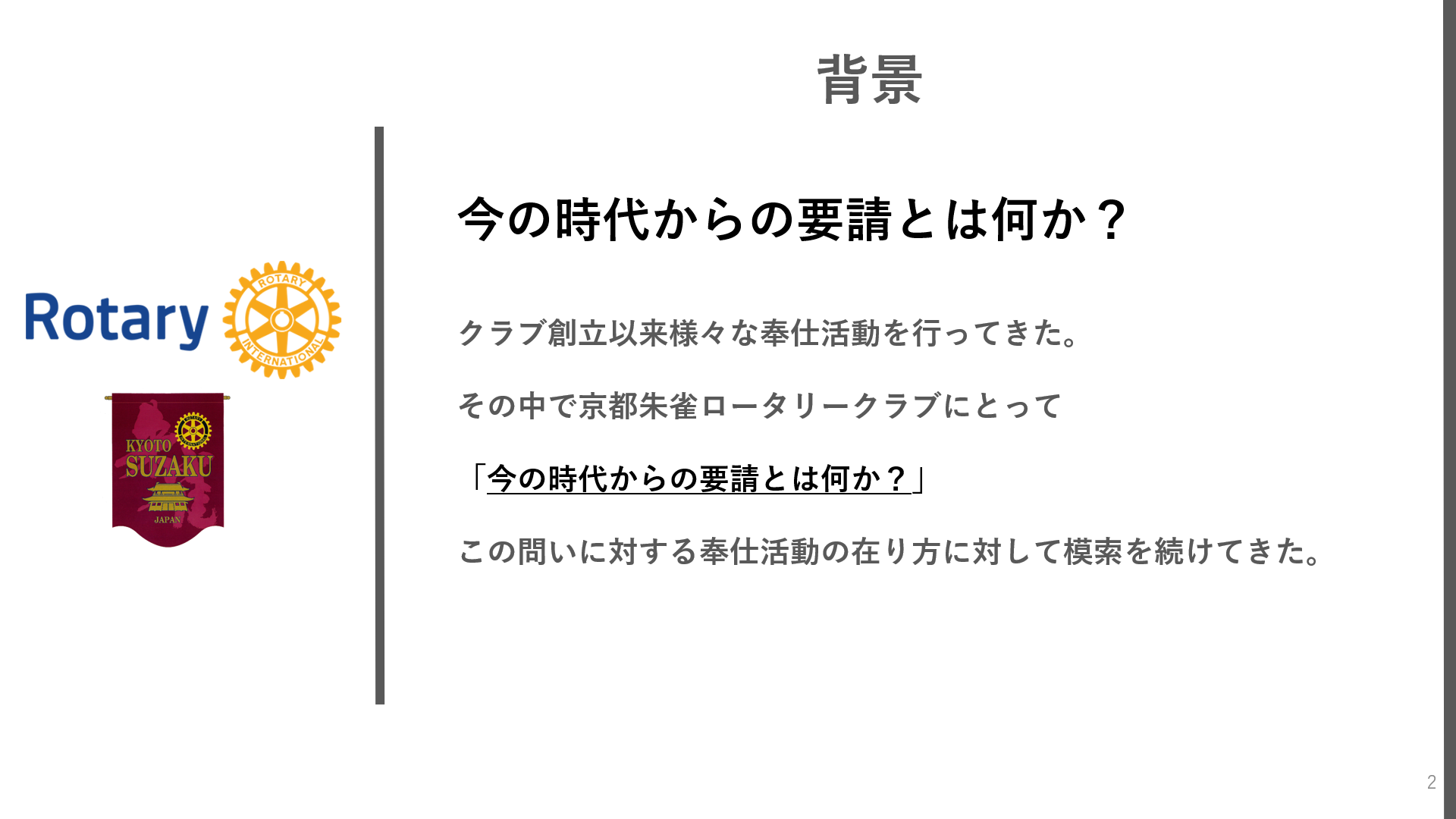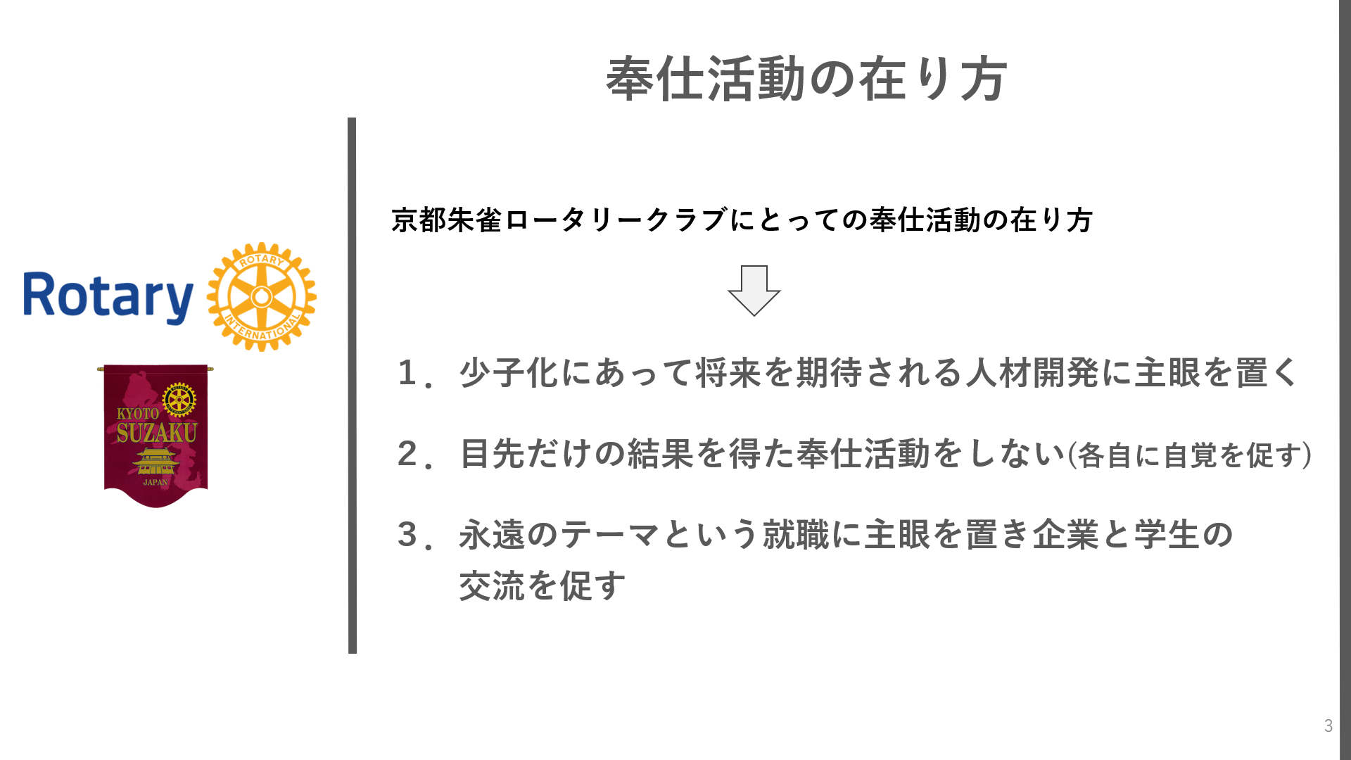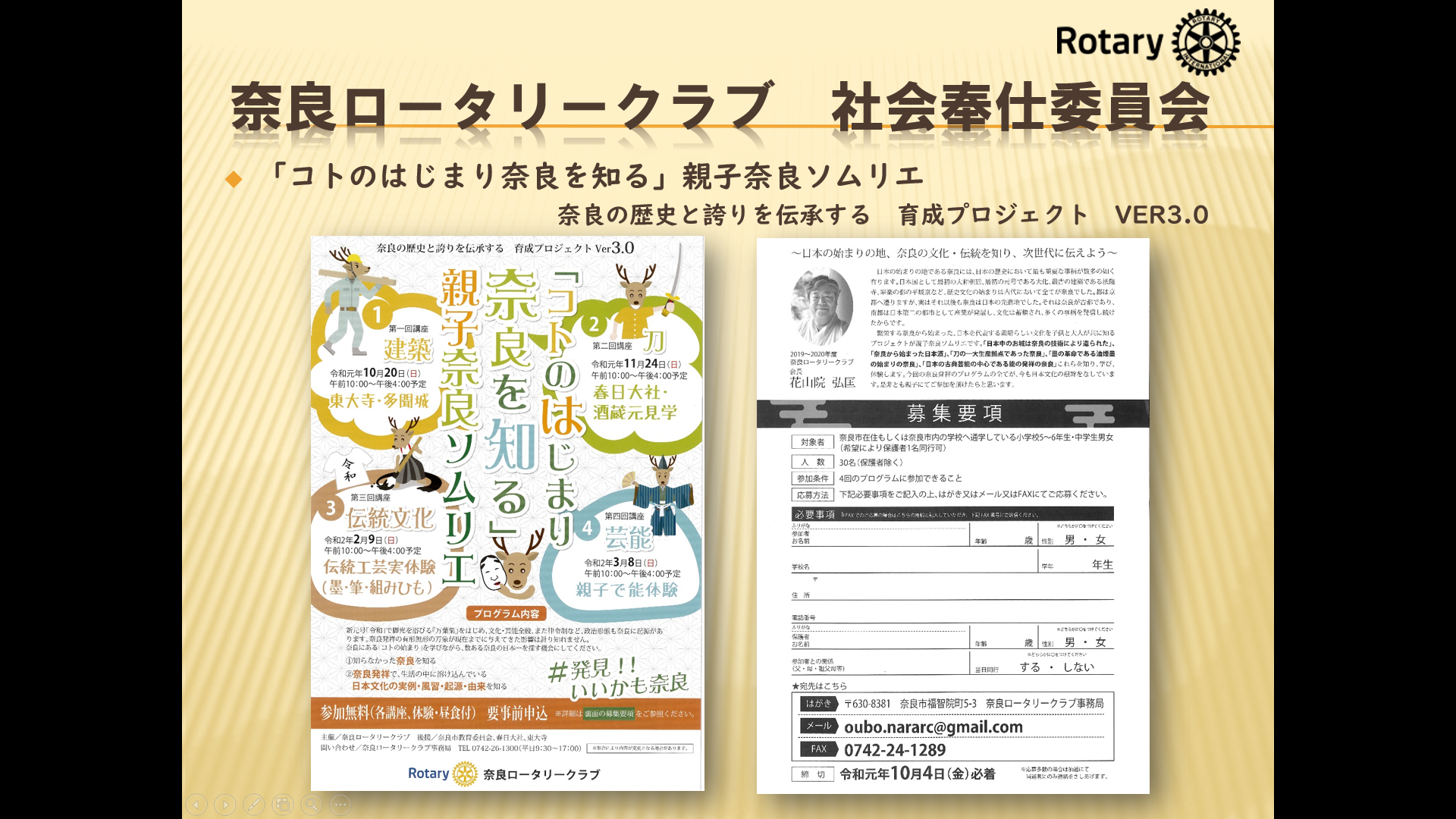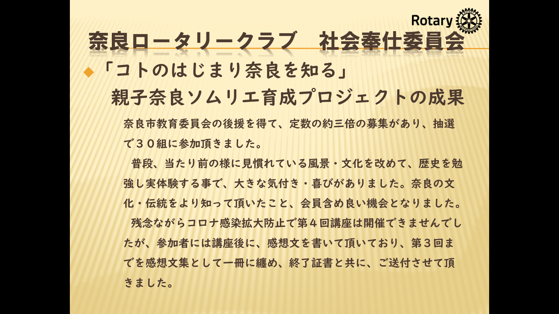 内 容:各クラブの社会奉仕委員長および関連役員の皆様にZOOM上にご参集いただき、その中で二部構成となるセミナーを開催いたしました。