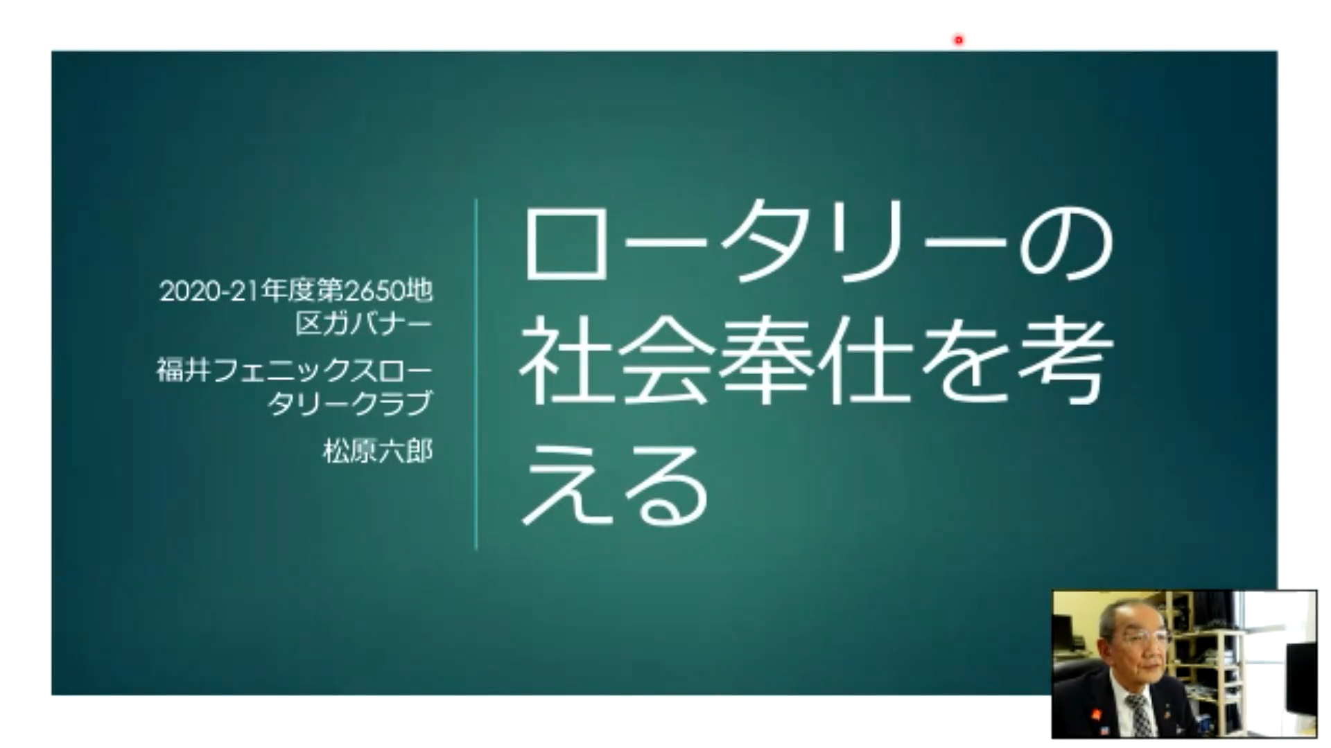 講 師 2020-21年度第2650地区ガバナー 松原六郎 様
