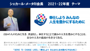 冒頭、馬場ガバナーより本年度のRIのテーマの紹介がありました。