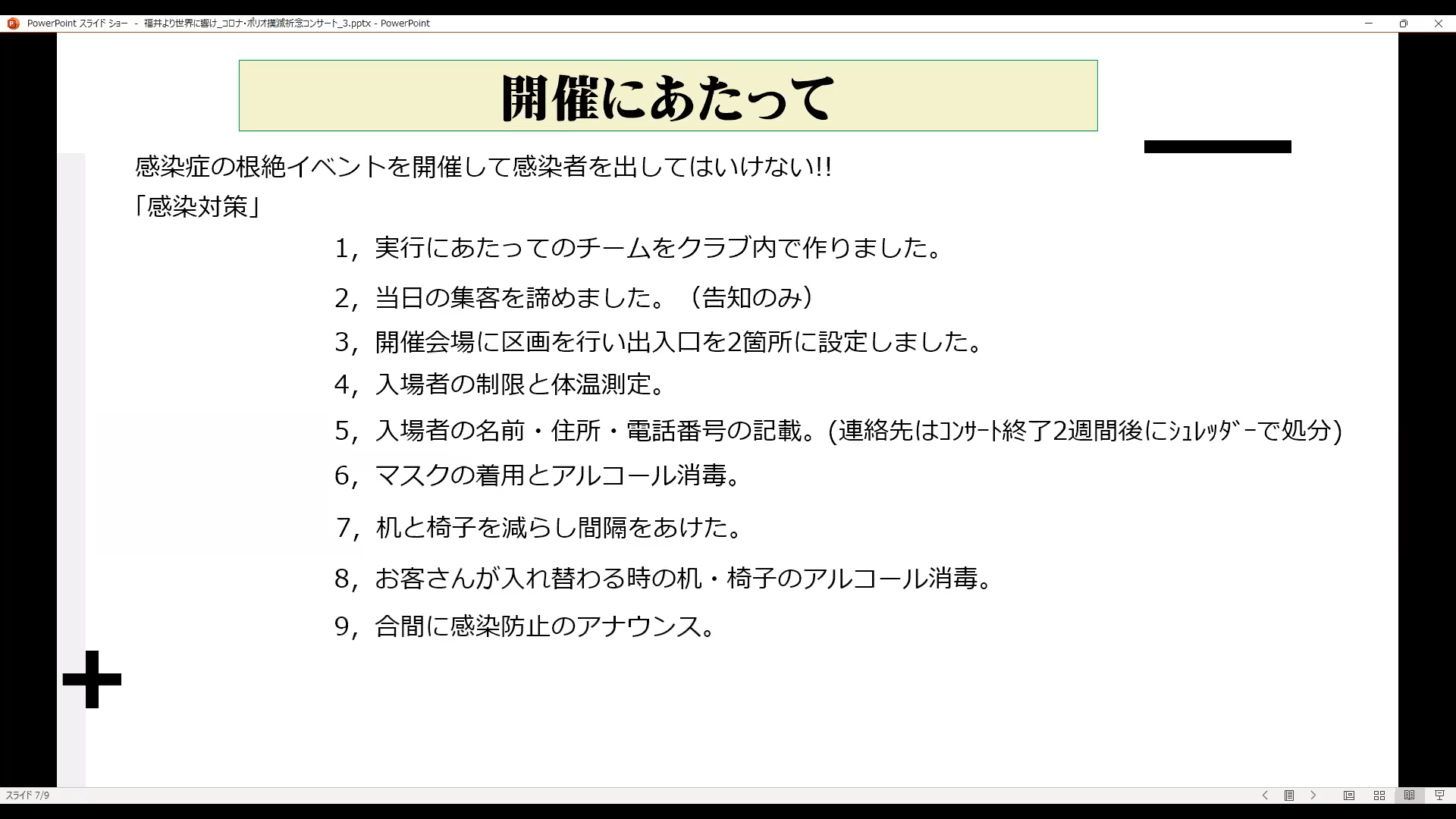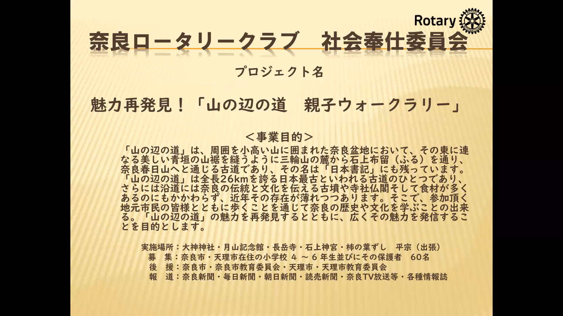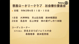 内 容:各クラブの社会奉仕委員長および関連役員の皆様にZOOM上にご参集いただき、その中でセミナーを開催いたしました。
