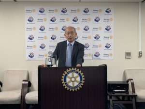 前半は基調講演として講師に馬場益弘ガバナーを迎え、『ロータリーが社会奉仕に思うこと』テーマで講演を行っていただきました。