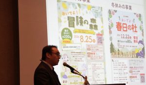 二部では、奈良ロータリークラブ 社会奉仕委員長の前川貴洋様によります、「おいでよ!冒険の森」「おいでよ!春日の杜」という事業の事例発表を行っていただきました。