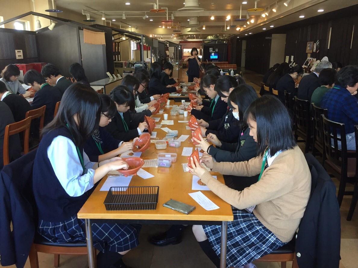 2018年11月11日(日)インターアクト地区大会 本大会が京都洛中ロータリークラブ提唱、龍谷大学付属平安高等学校のホストで開催されました。場所は聞法会館です。前日の前夜祭に引き続きアクターの参加は、169名です。全体会議の後、フィールドワーク「京都の伝統工芸体験 ①匂い袋調合 ②京こま作り ③七味の調合 ④土鈴人形の絵付け」を行い、伝統産業への理解を深めました。昼食を食べながらのグループワークでは、伝統文化について討論を行い、グループの代表による発表もいろいろな意見が出てきました。次年度のホストは、京都洛西ロータリークラブ提唱の花園高等学校です。