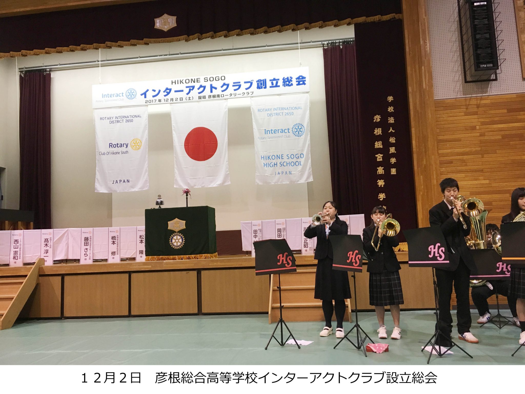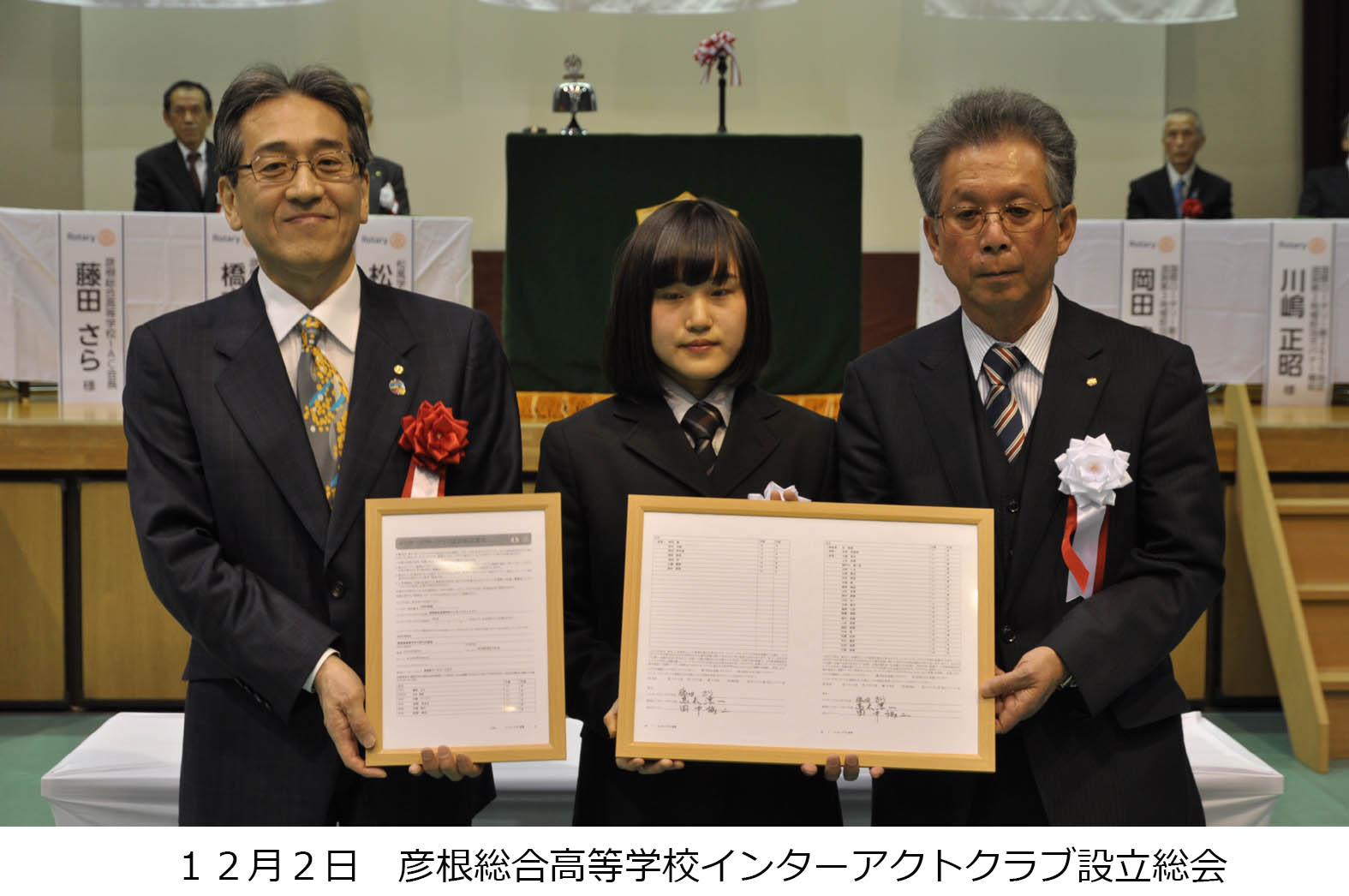 彦根南ロータリークラブ提唱 彦根総合高等学校インターアクトクラブ創立総会