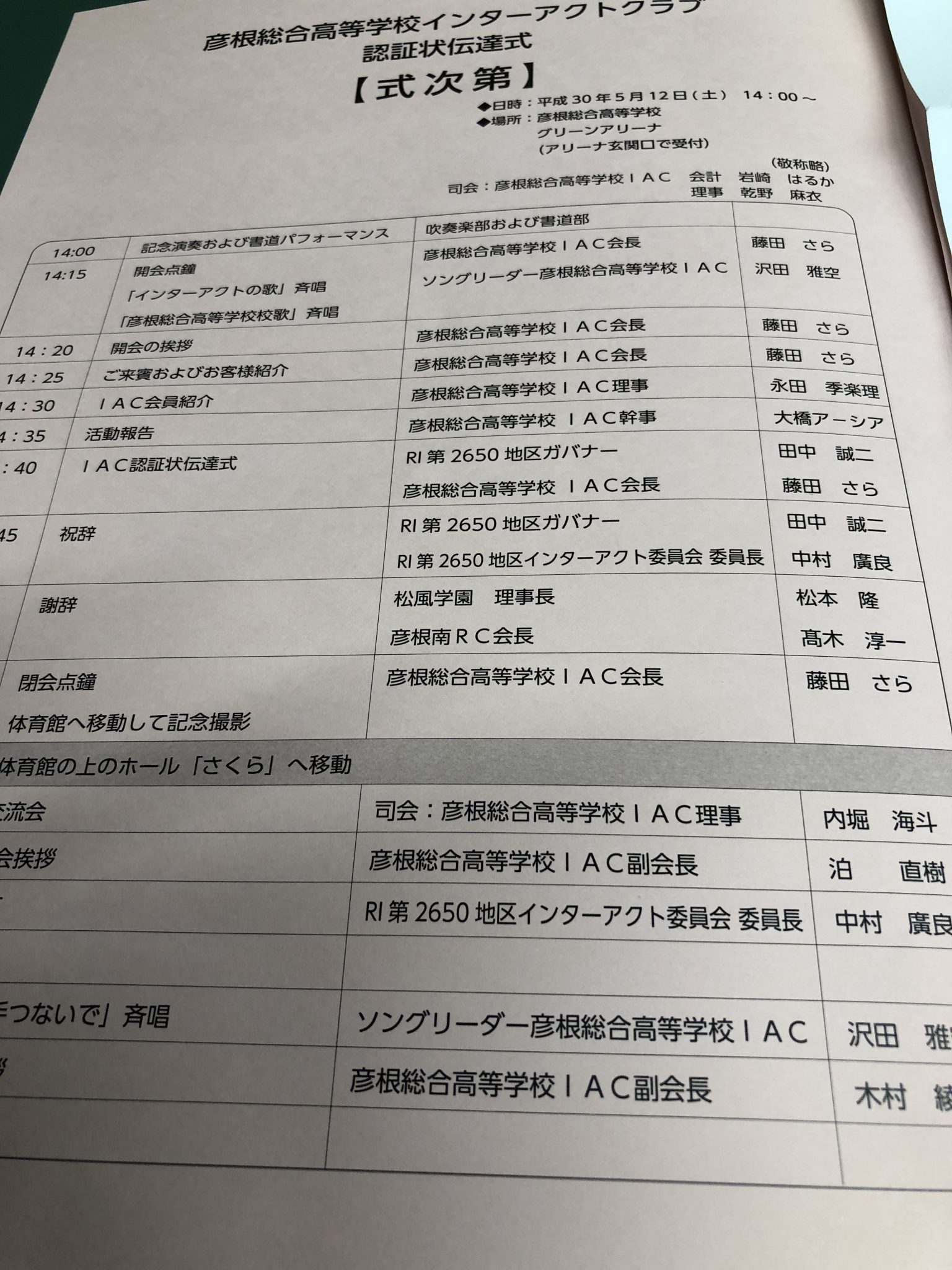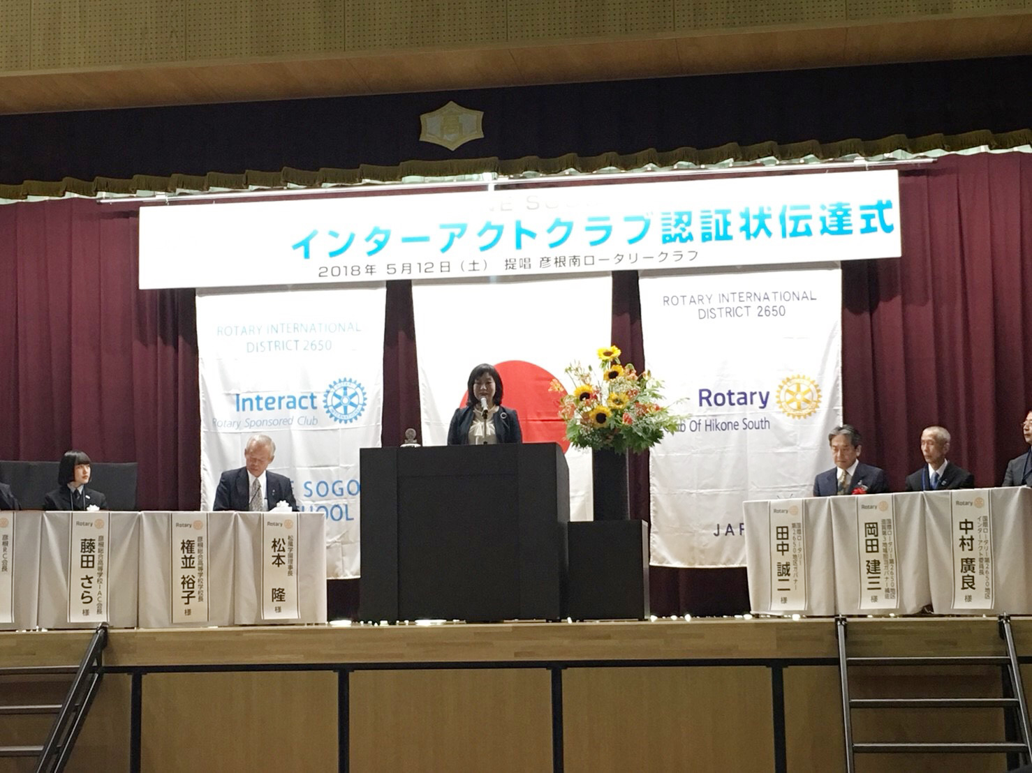 彦根総合高等学校インターアクトクラブ認証状伝達式