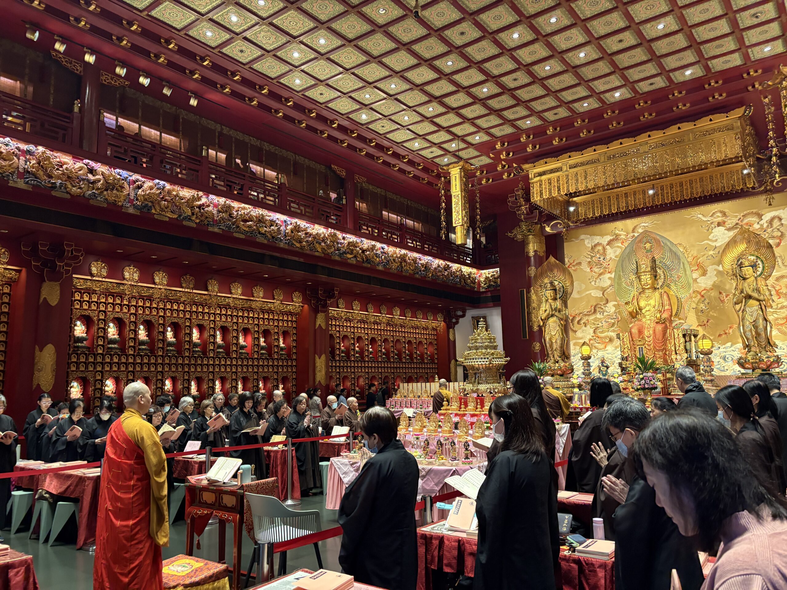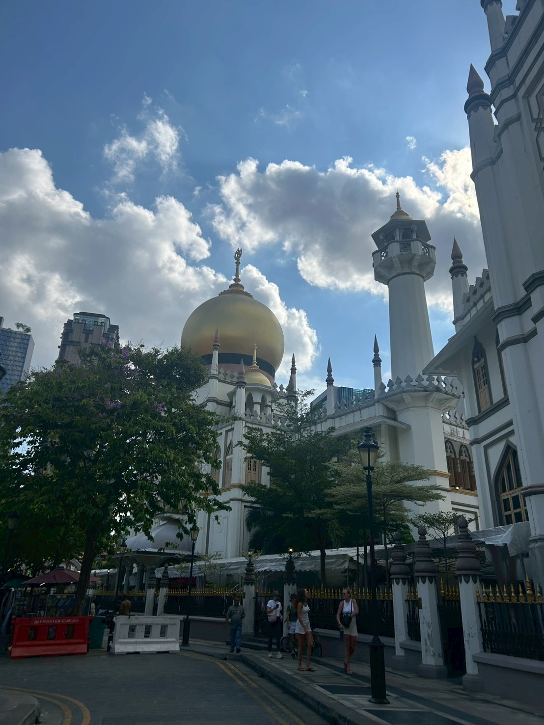 現地アクターの案内のもと3つの文化圏(チャイナタウン、リトルインディア、カンポングラム)を巡りました。まずはチャイナタウンに向かい、Buddha Tooth Relic Temple(仏牙寺龍華院)という有名なお寺を見学しました。その後ホーカーズと呼ばれる日本で言うフードコートのような場所で昼食を取り、現地の料理を各々楽しみました。続いてリトルインディアを散策し、寺院やモスクを見学しました。散策していると金の装飾品の店が多くインド系コミュニティに根ざした街並みになっていました。最後にカンポングラムに向かいマレー文化やアラブ文化が色濃く残った歴史的な街並みを散策しました。